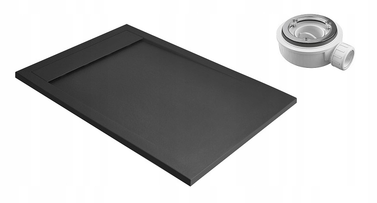 - Прямоугольный поддон антрацитового цвета из мраморного конгломерата.