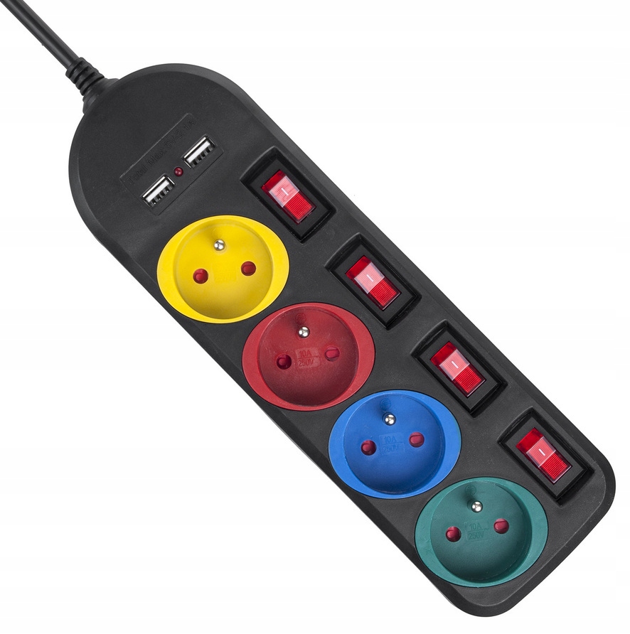 Удлинитель с 4 розетками позволяет подключаться до четырех полноразмерных разъемов одновременно. Он оснащен защитой от детей, отдельными выключателями для каждой розетки и 2 USB-портами для зарядки таких устройств, как смартфоны, планшеты, цифровые фотоаппараты и т. д. Сегодняшняя реальность требует подключения к розеткам большого количества устройств. Вот тут-то и пригодятся удлинители, наш удлинитель — идеальное решение.