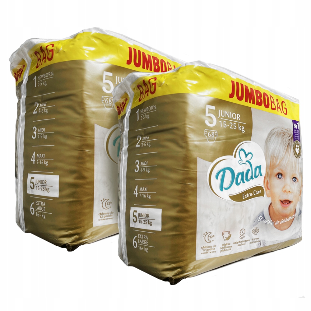 2X ПОДГУЗНИКИ DADA EXTRA CARE 5 JUMBO BAG JUNIOR 68 ШТ. = 136 ШТ.