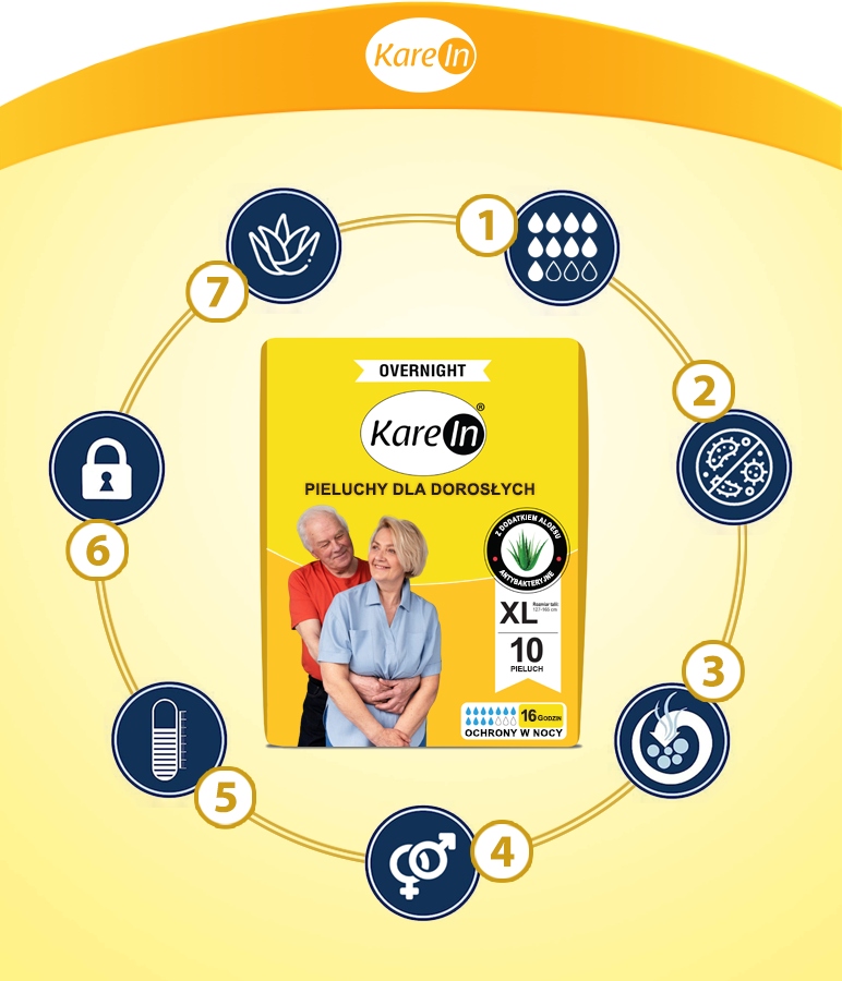7. ✅Продукты KareIn разработаны с учетом представителей обоих полов и идеально подходят как женщинам, так и мужчинам. Независимо от пола, вы сможете насладиться комфортом и функциональностью подгузников KareIn. Это отличный выбор также благодаря разнообразию моделей и возможности адаптировать их к индивидуальным потребностям, благодаря широкому выбору продуктов от Классической защиты до 10 часов, Премиум до Защита 12 часов, до защиты на ночь до 16 часов. Кроме того, это экологические продукты. Вы осознаете, что выбираете 100% экологически чистые подгузники.