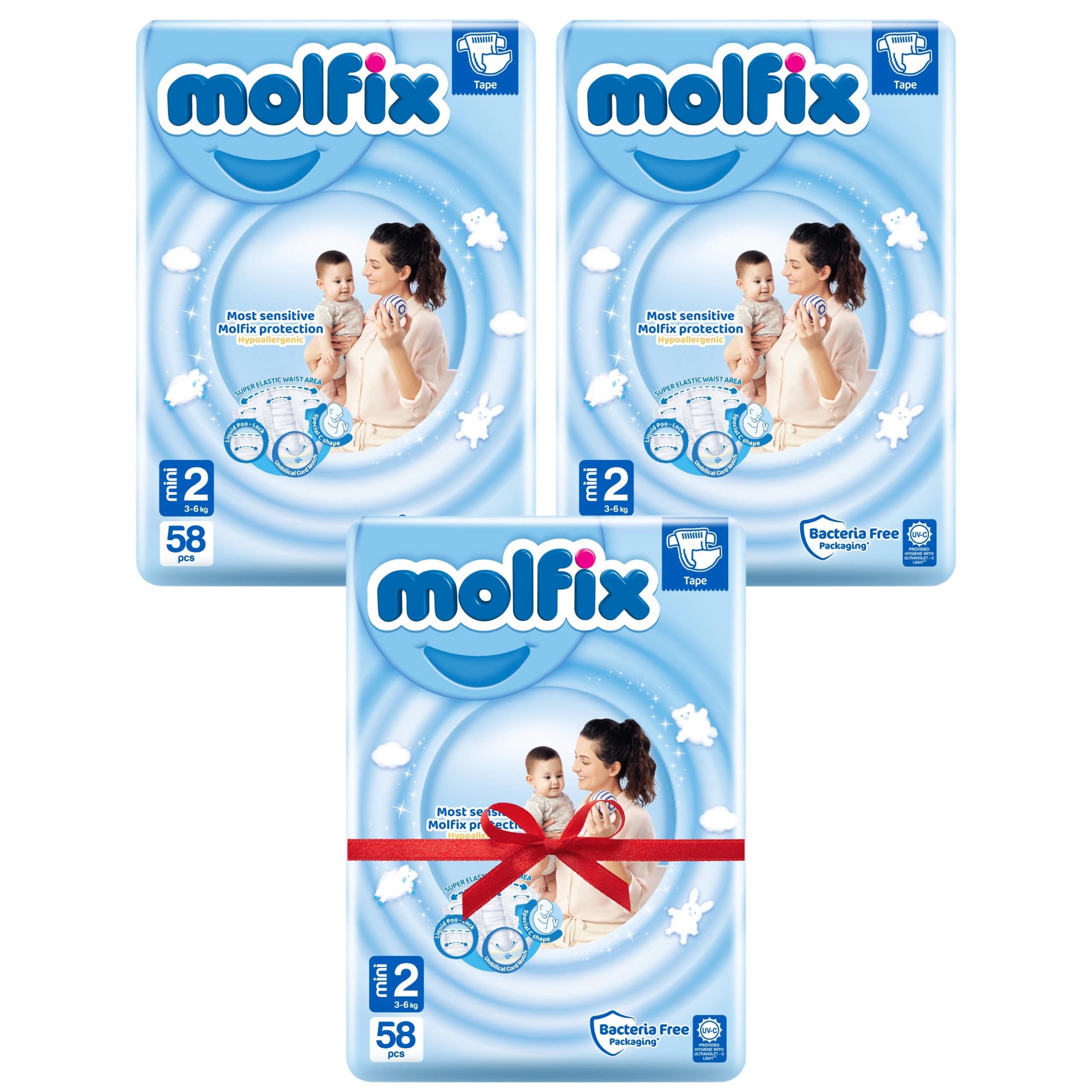 Все упаковки подгузников Molfix не держатся вместе бактерии, благодаря использованию специального ингредиента в процессе производства защита.