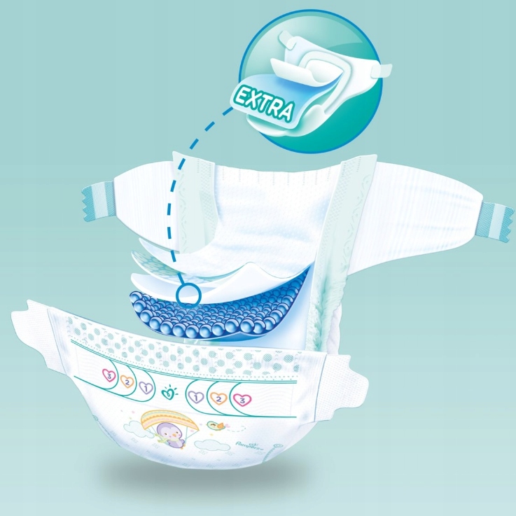 Одноразовые подгузники Pampers 7 Active Baby созданы таким образом, что независимо от движений и положения ребенка во время сна, его кожа остается сухой до тех пор, пока возможный. Они имеют внутренний слой с впитывающими микрожемчужинами, удерживающими влагу, и дополнительный впитывающий «спящий» слой, отвечающий за ее более быстрое впитывание.