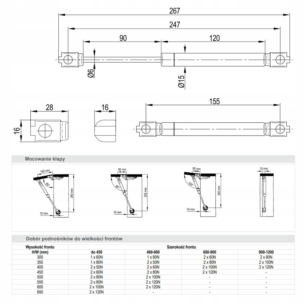 Підйомник, привод, меблі, газовий телескоп REJS 100N
