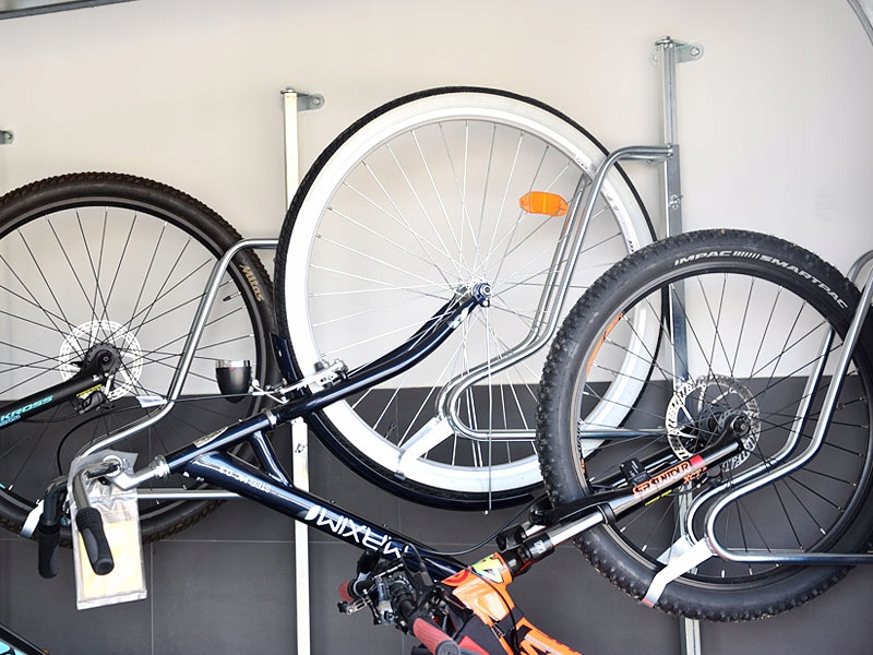 Велоподвеска для обустройства больших велокомнат. Полностью регулируемый (вверх-вниз/влево-вправо) – позволяет настроить положение по своему вкусу. Кроме того, подвесную станцию можно перемещать по горизонтали, что существенно облегчает снятие и парковку велосипеда, особенно когда расстояния между станциями небольшие. Подвеска прошла нагрузочные испытания и получила положительное заключение Института технического надзора.