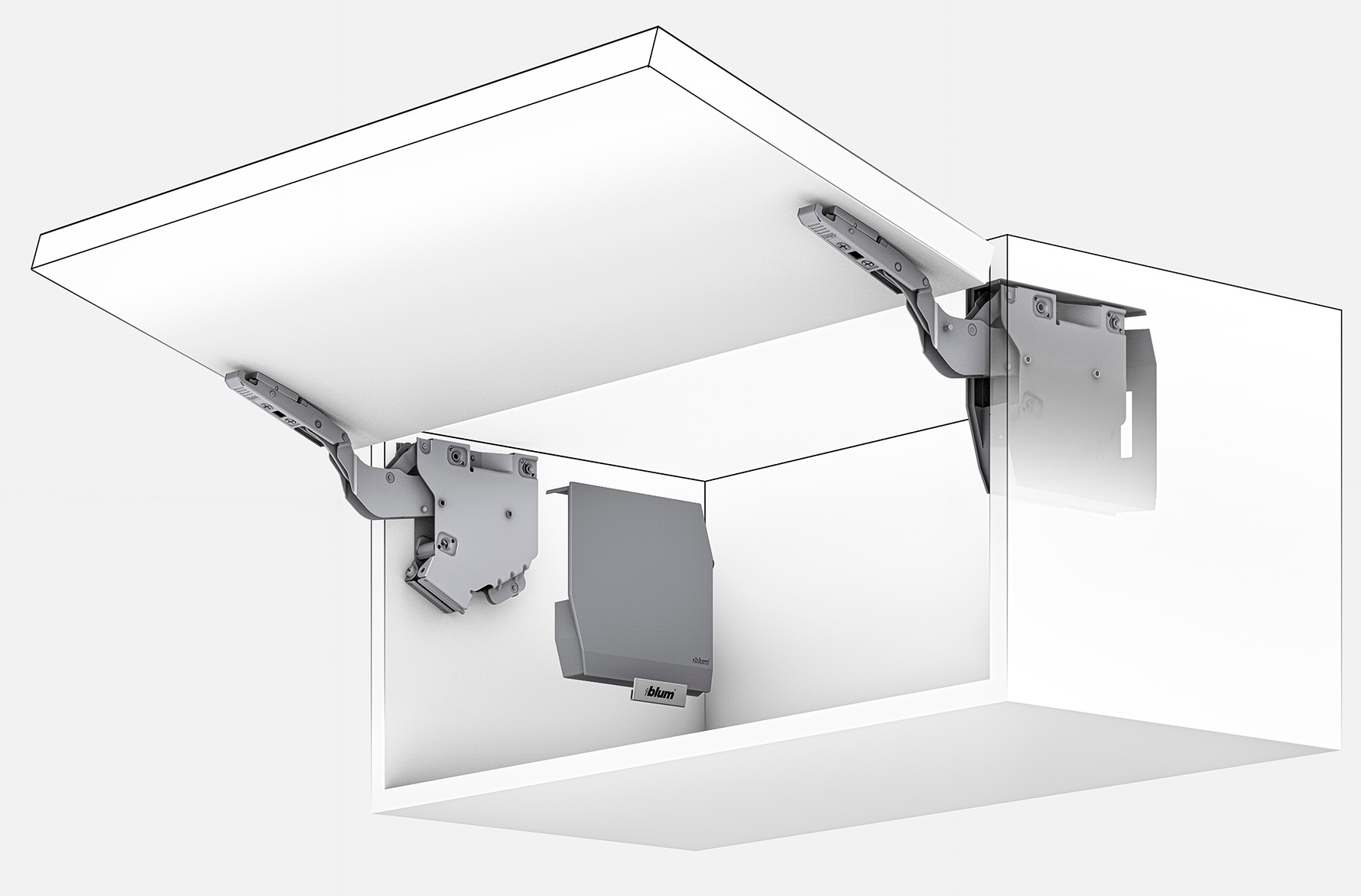 Элементы AVENTOS HK-S можно установить быстро и легко. легко – практически без инструментов. Регулировка привода в зависимости от веса фасада позволяет небольшой наклонной передней панели надежно открываться, закрываться и останавливаться на любой высоте в течение всего периода использования. Откидная передняя часть закрывается плавно и бесшумно.