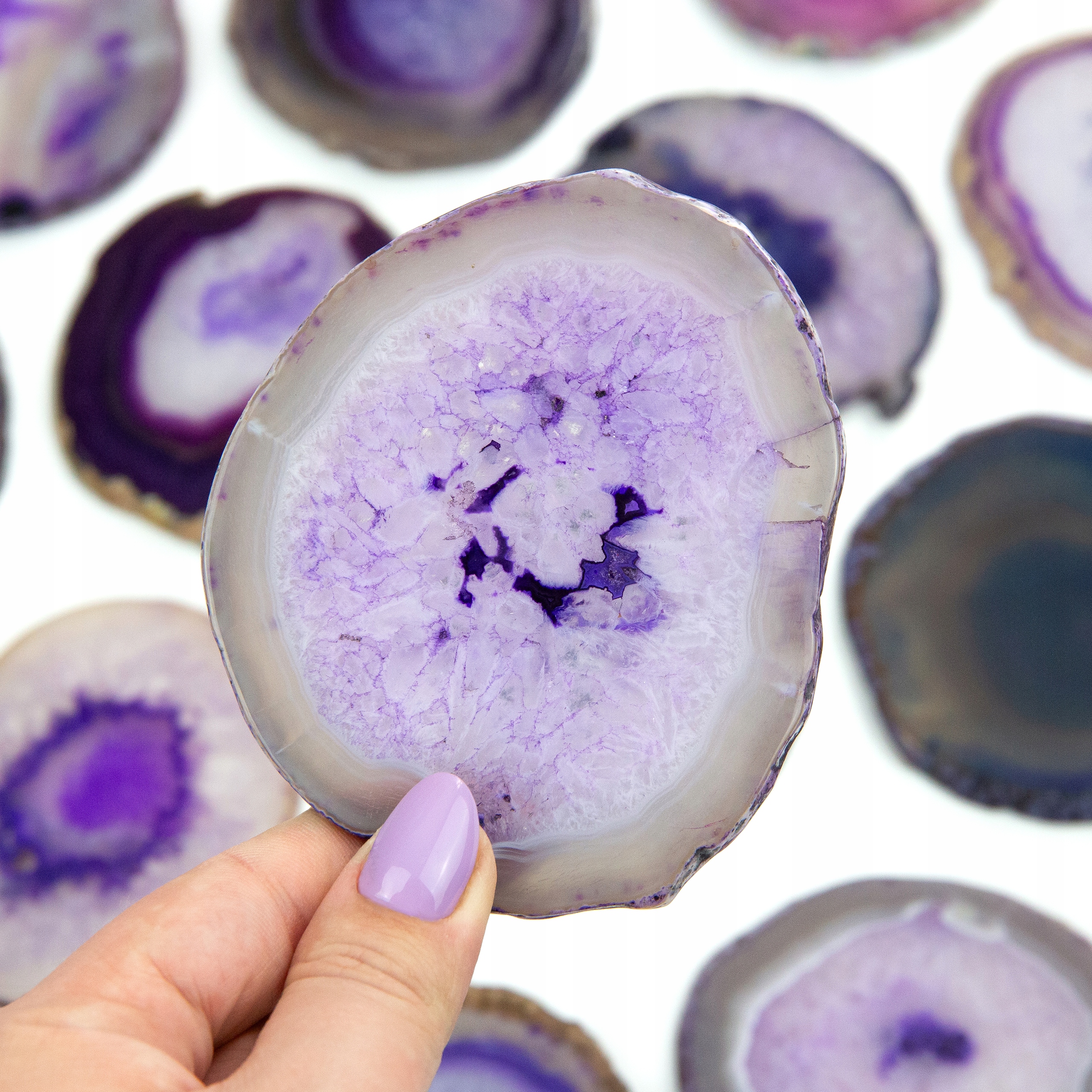 Підкладка для кухля ФІОЛЕТОВИЙ АГАТ Натуральний камінь 8-10 см Агат зріз