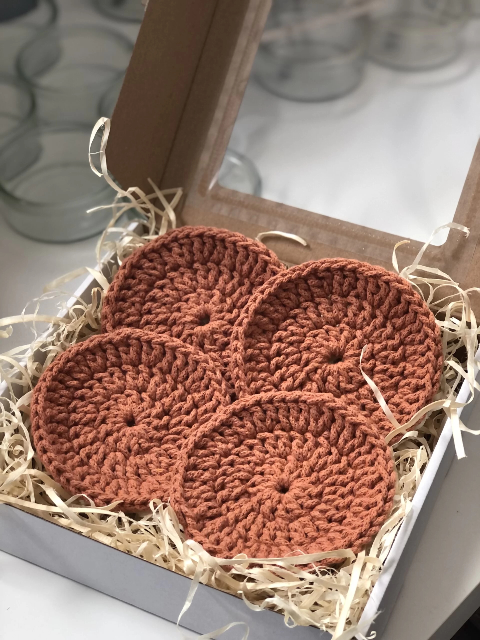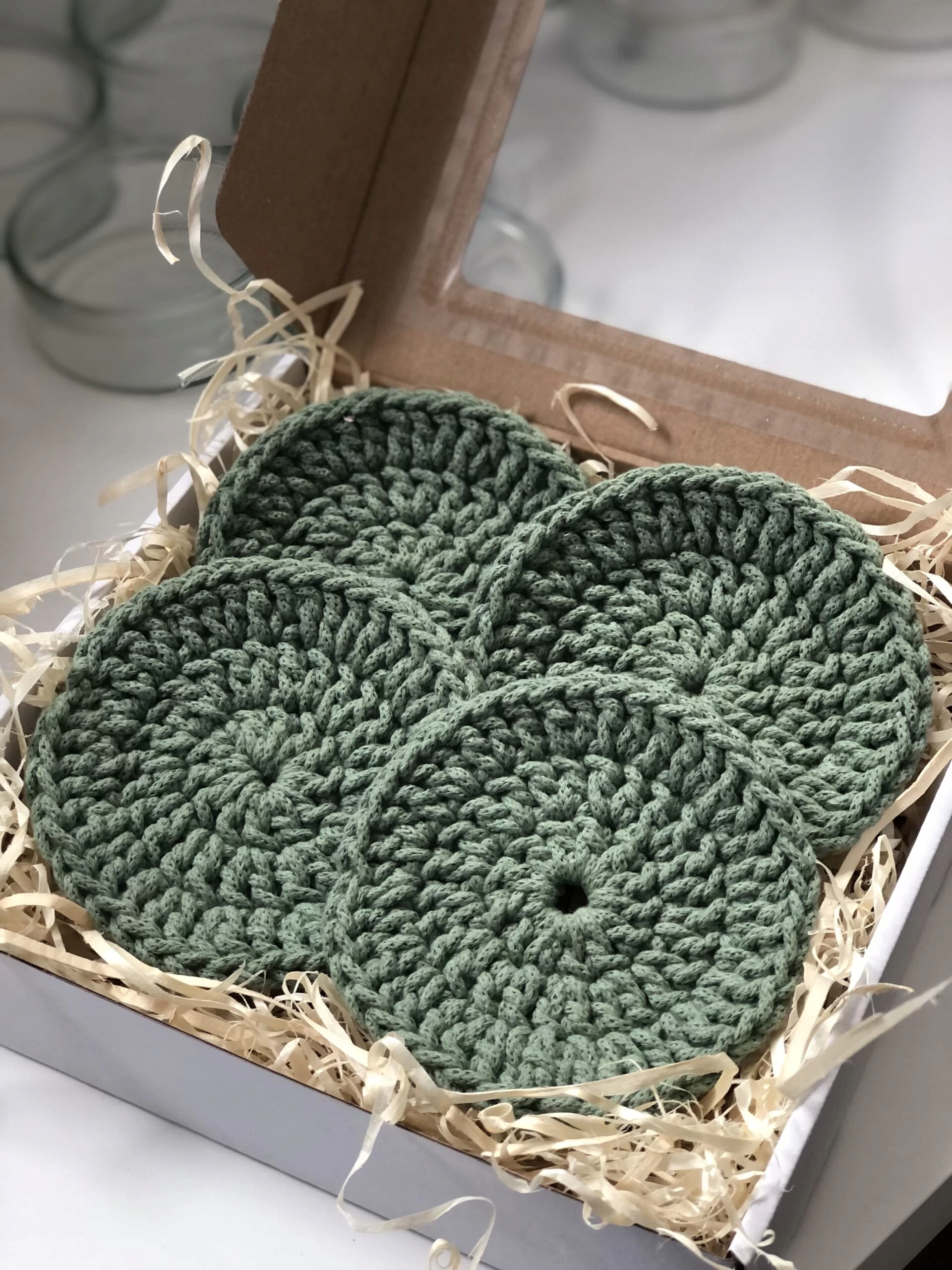 Pads Muga или подкладки -харвест Я делаю вязание крючком из хлопковой нити. Шайбы следует вымыть вручную и сушить.