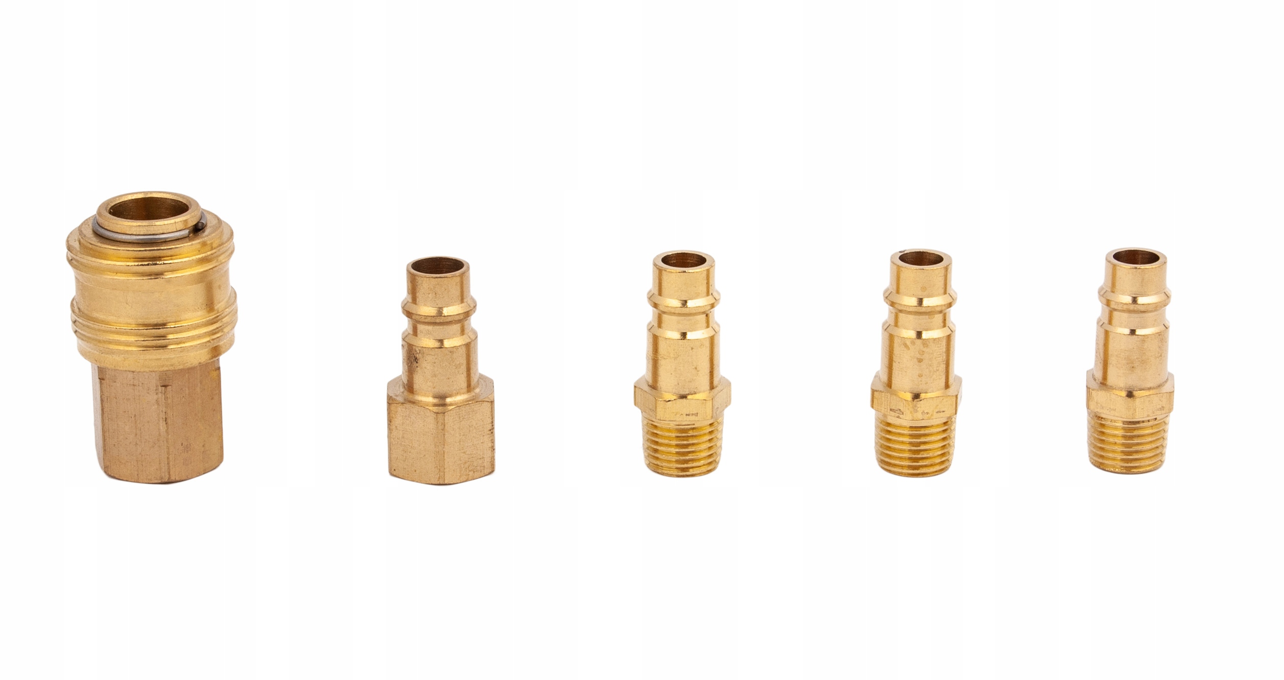 В комплект входит 1 быстроразъемный соединитель, ввинчиваемый в компрессор, и 4 штекерных разъема, которые можно использовать для устройств. которые должны иметь доступ к компрессору.