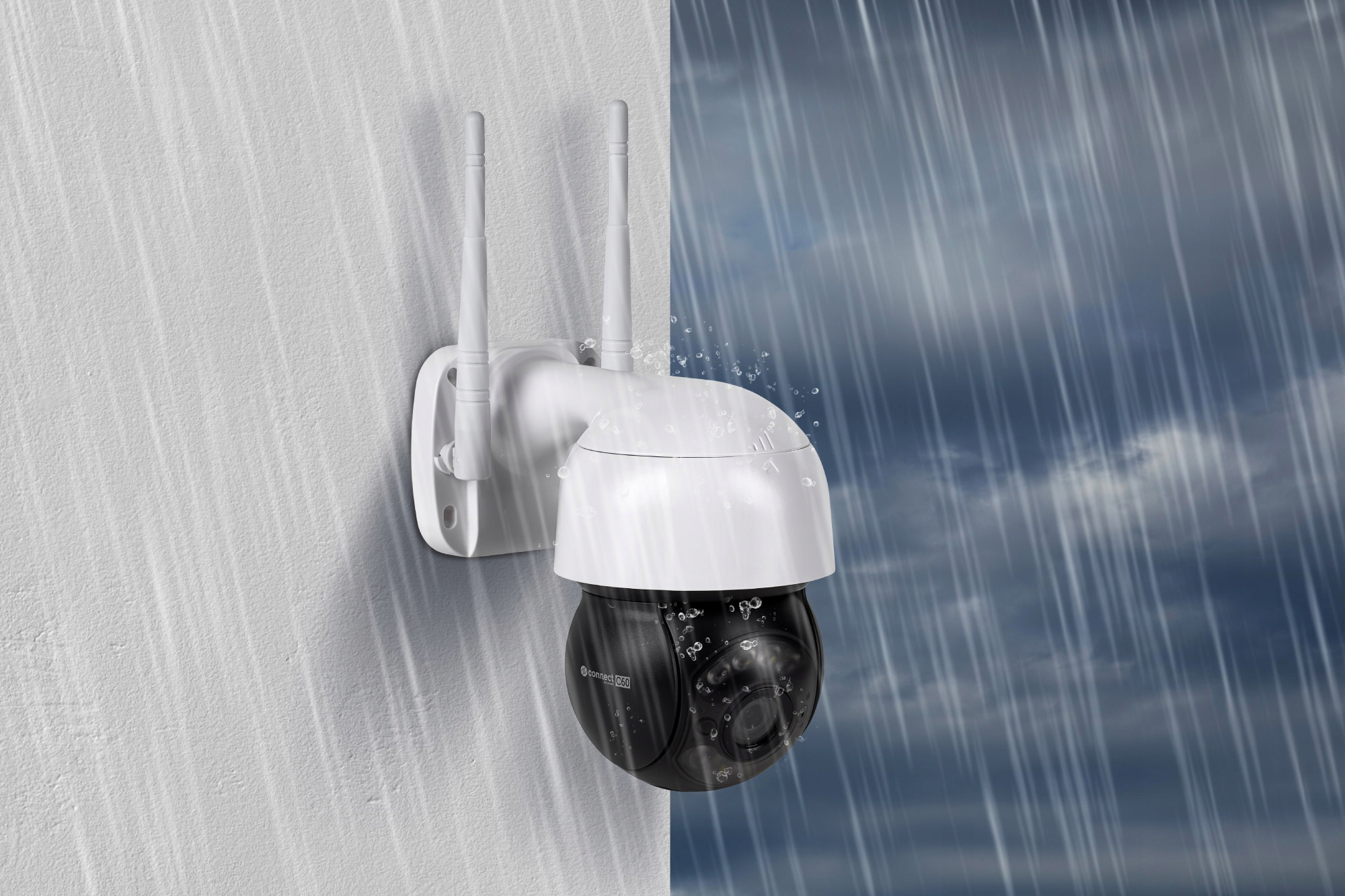 В первую очередь заслуживает внимания прочный корпус, соответствующий классу устойчивости IP66. Камера наблюдения Connect C60 водонепроницаема и пыленепроницаема. При этом он не боится ни жары, ни мороза. Контролируйте, что происходит в вашем дворе в любое время года!