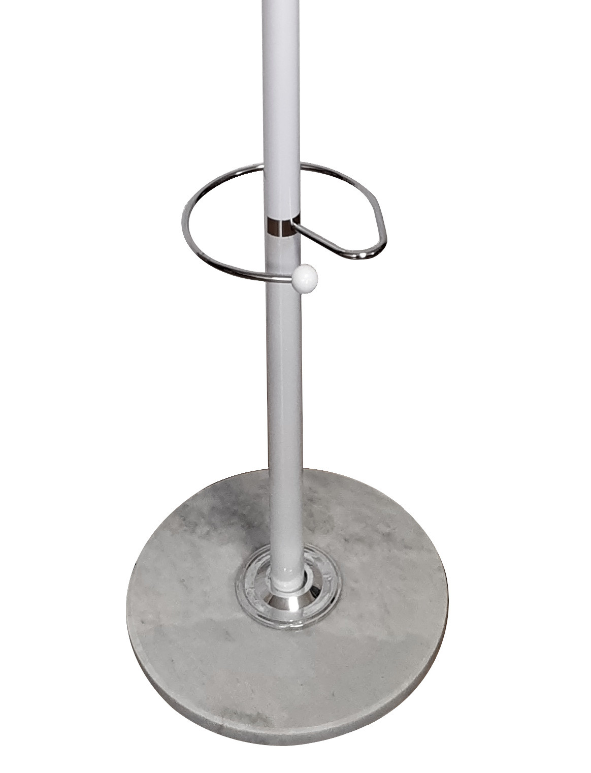 Металлическая трубка и тяжелое мраморное основание обеспечивают устойчивость нашей вешалки.