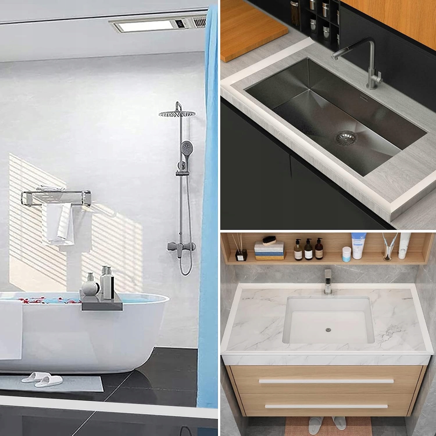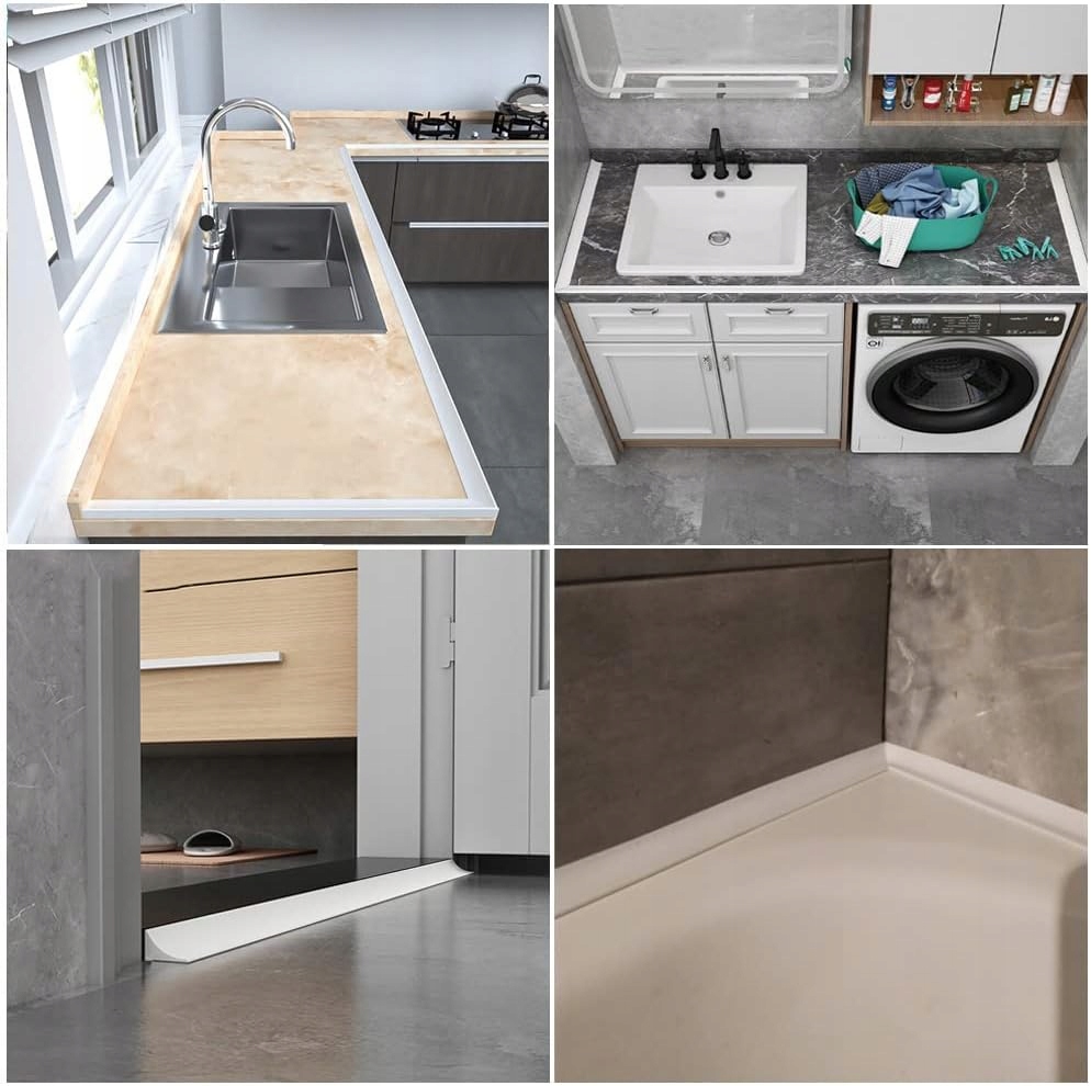 ► ВЫПОЛНЕНИЕ : 1. Чтобы сделать водонепроницаемый ремешок более долговечным, рекомендуется равномерно нанести прикрепленный клей на край, чтобы улучшить адгезию. 2. После установки плотины с задержанием воды, оставьте на 24-48 часов. Не позволяйте проточной воде замочить ремешок для остановки воды и дождитесь клейкого отверстия перед использованием. Крышка для душа можно использовать по краям столешницы (кухонные раковины, туалетные столы во влажных комнатах, оконные подоконники, края ванны). 2. Это можно использовать в качестве порогов (дверь спальни, двери ванной комнаты). 3. Может использоваться для блокировки зазоров 0-20 мм (между столешницы и стены, между полом и стеной)