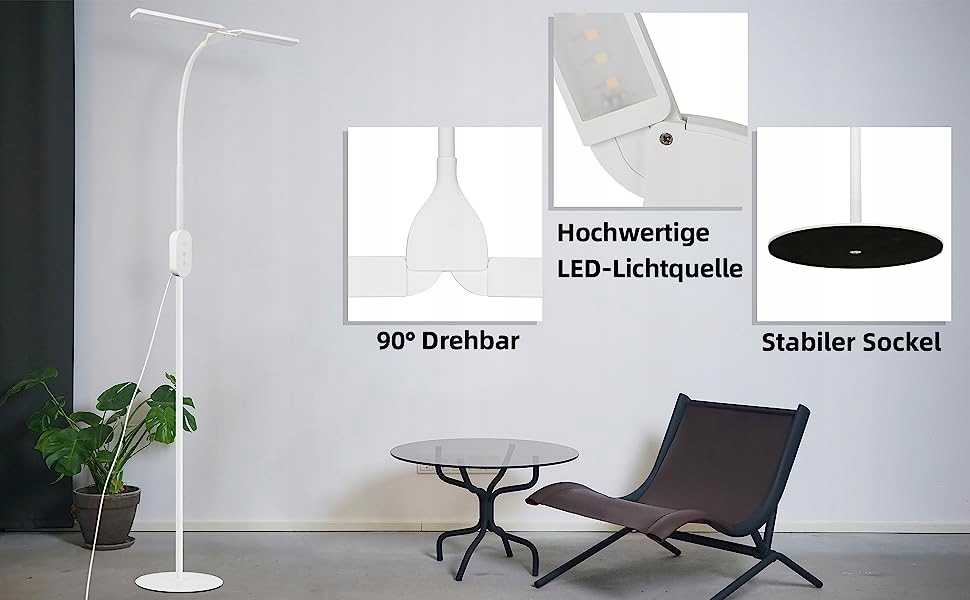 【Премиум-светодиод и гибкая шея】 Торшер с качественным светодиодом излучает мерцание и не слепит, что эффективно защищает глаза от дискомфорта и усталости даже после долгих часов работы или учебы. Регулируемая на 360° гусиная шея придает этому современному торшеру максимальную гибкость в направлении света именно туда, где он вам больше всего нужен, обеспечивая идеальное освещение для всех ваших занятий.