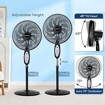 Этот вентилятор имеет 7 специально разработанных лопастей, а головку можно поворачивать на 75 градусов влево и вправо для подачи воздуха туда, где он необходим в комнате. По сравнению с электрическими вентиляторами с 3 и 5 лопастями, электрические вентиляторы с 7 лопастями имеют больше лопастей, и при резке ветер кажется более мягким. При том же объеме воздуха уровень шума также ниже из-за большей режущей поверхности.