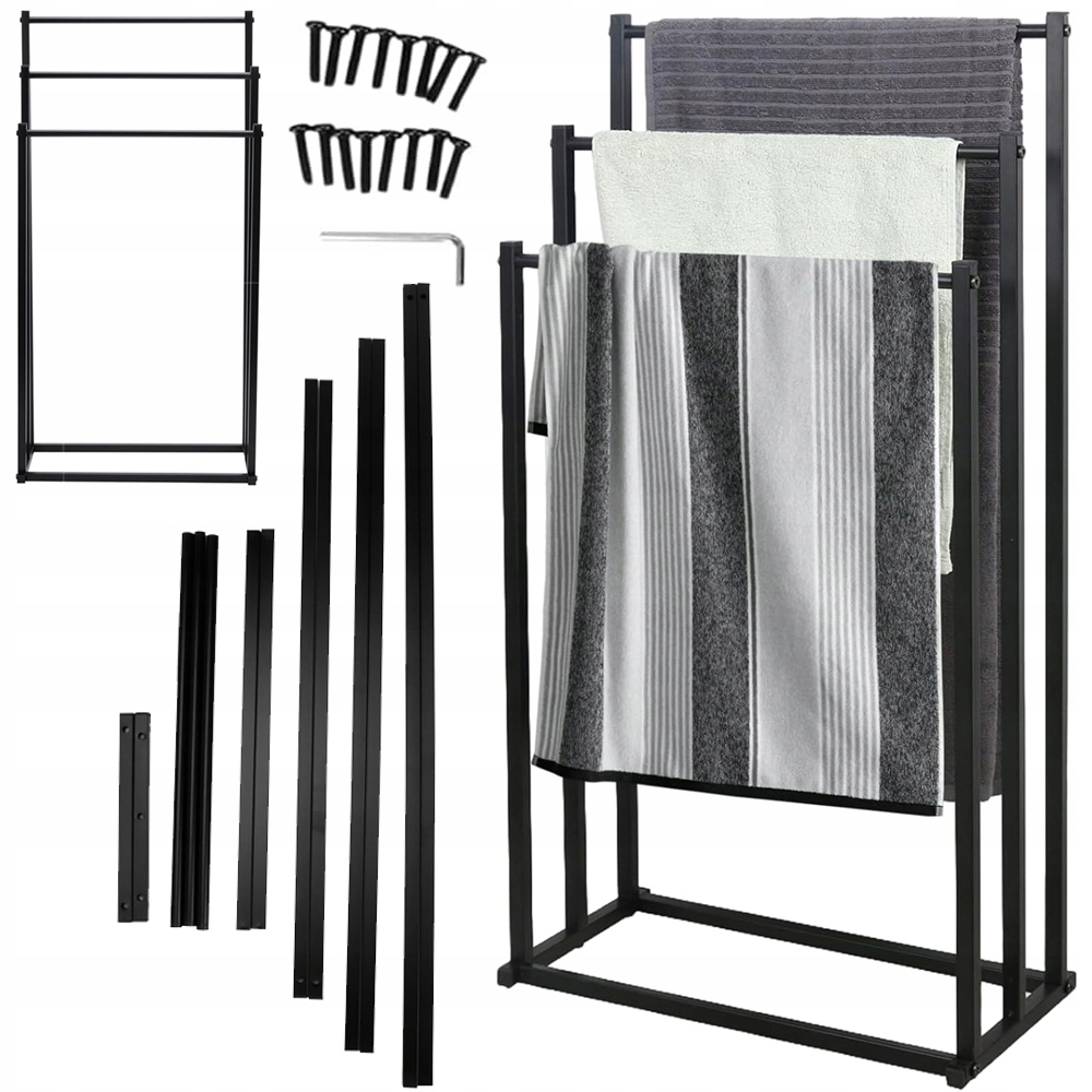 ✅Чрезвычайно устойчива:Вешалка для полотенец изготовлена из толстых квадратных стальных труб. Большой вес придает ему устойчивость. Высококачественное покрытие делает вешалку чрезвычайно прочной.