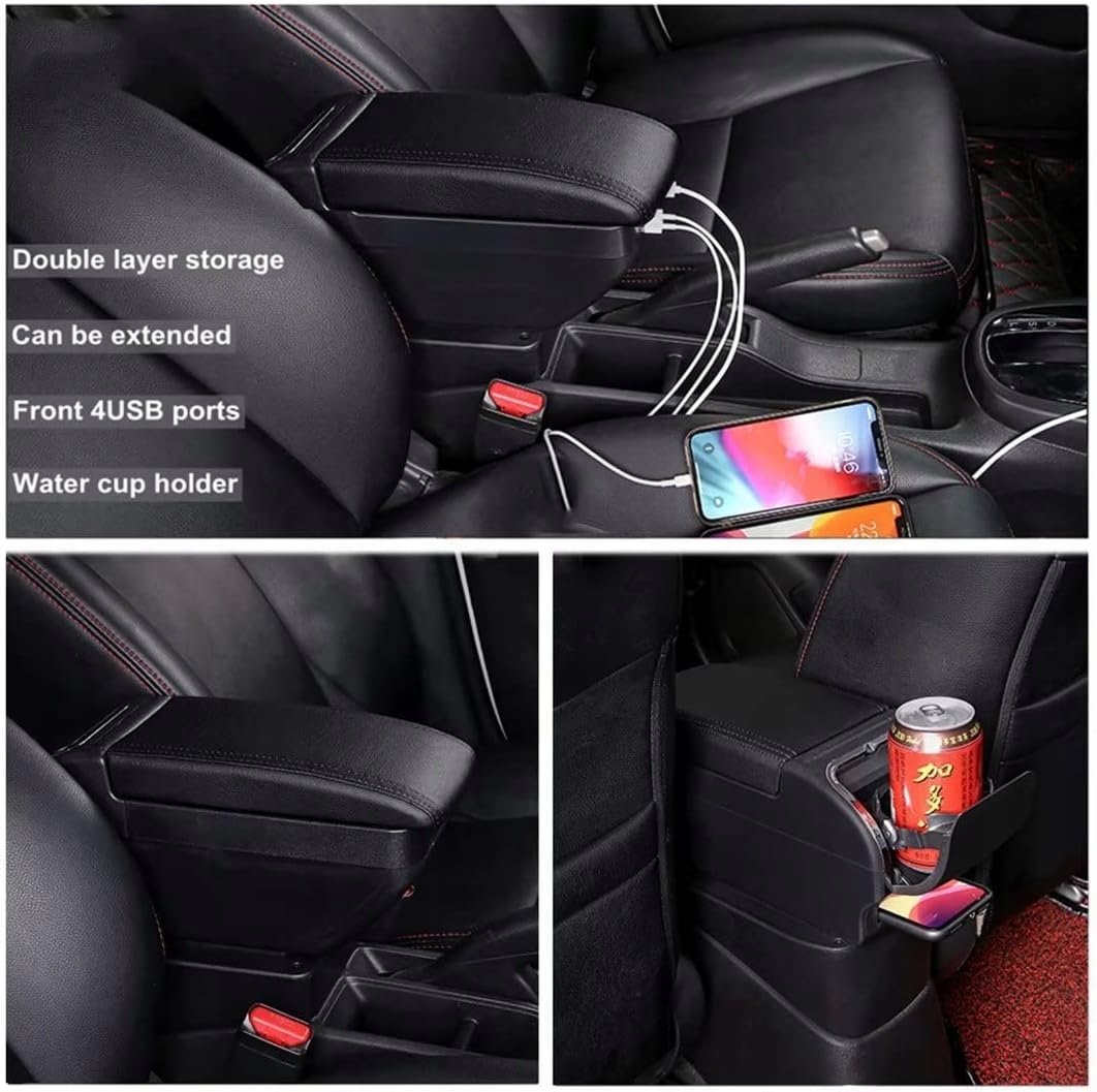 Особенности: простота установки, двойное отделение, со скрытыми подстаканниками и пепельницей, панель можно перемещать вперед и назад, чтобы уменьшить усталость рук. Материал: Изготовлен из высокопрочного пластифицированного материала и высококачественной кожи. Экологически чистая, красивая, высокая твердость, ее нелегко сломать, кожа мягкая и удобная, легко чистится. Преимущество: эргономичный дизайн позволяет удобно расположить руки во время вождения, эффективно снижая утомляемость водителя. Двойное пространство для хранения мобильных телефонов, монет, других аксессуаров и т. д. сделает ваш автомобиль более аккуратным и менее грязным. Установка: Просто установите подлокотник в оригинальные монтажные отверстия вашего автомобиля, все необходимые установочные аксессуары входят в комплект, простая и надежная установка.