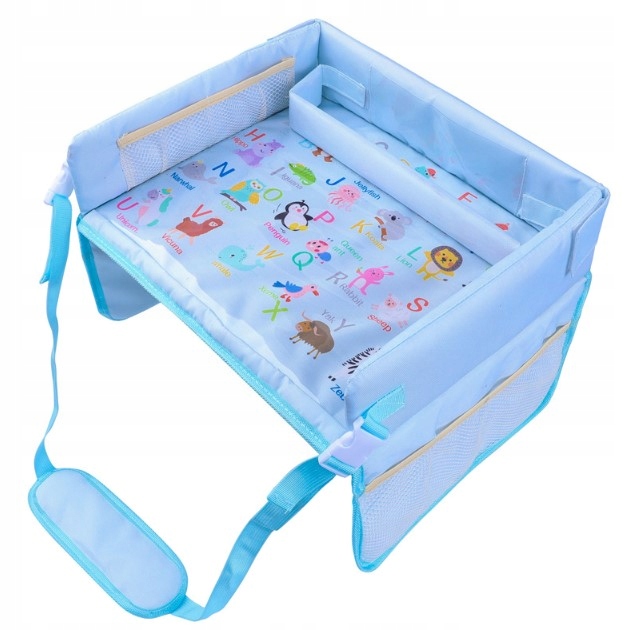 Выполнен из мягких элементов. Приподнятые стороны стола предотвращают падение предметов, находящихся на нем. Стол имеет просторные боковые карманы из эластичной сетки, в которые можно положить дополнительные аксессуары.