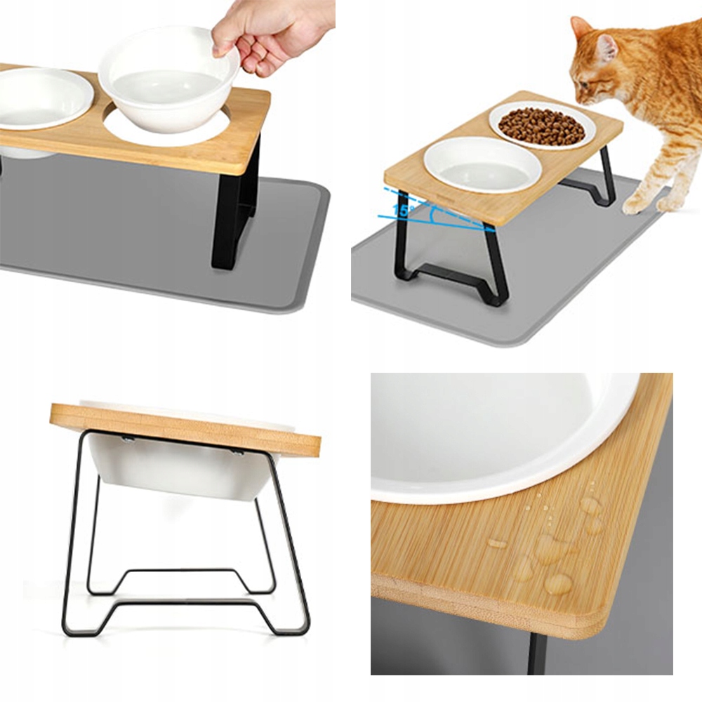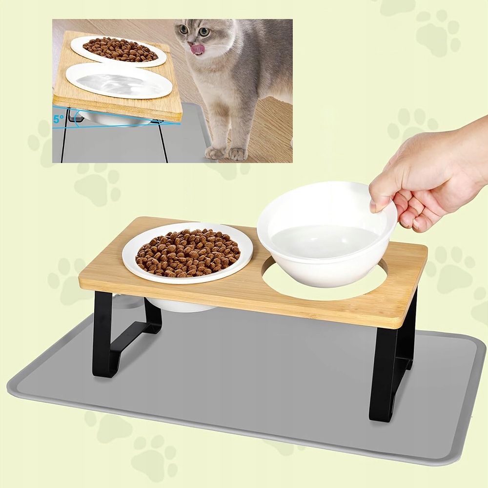 - Эта деревянная миска для кошачьего корма оснащена двумя керамическими мисками и силиконовым ковриком, чтобы удовлетворить потребности вашего питомца и разгрузить шею.