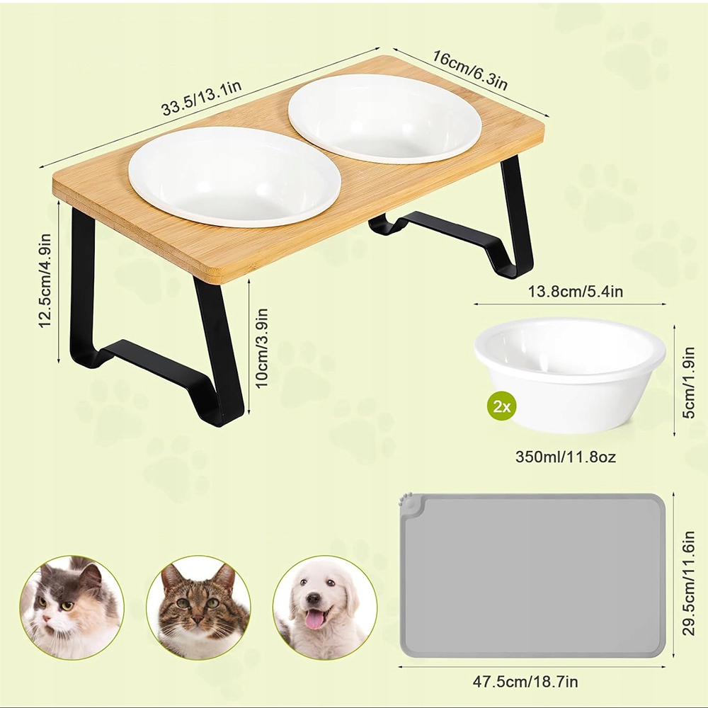 - Наши миски для кошек и собак представляют собой двойную станцию для кормления с двумя керамическими мисками, приподнятой бамбуковой подставкой и силиконовым ковриком.