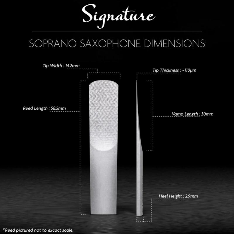 Signature Saxophone Saxophone Treeds охарактеризуется непосредственной реакцией. Они тоньше и жестче, чем традиционные украшения тростника, что делает их легкими в игре и чрезвычайно гладкими. Они обеспечивают чистое, сфокусированное и богатое аликвотами. Сопрано саксофон