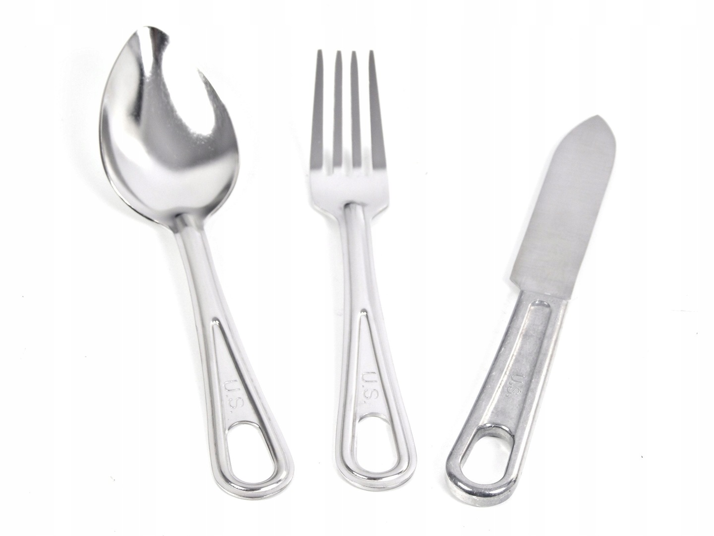 В комплект входят ложка, нож и вилка. Каждый имел отдельную подпись «США».