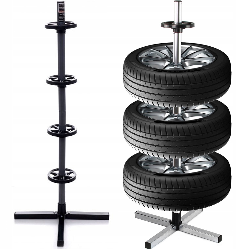 Подставка для комплекта автомобильных колес предотвращает деформацию шин и выход воздуха, а также очень проста в установке и использовании.