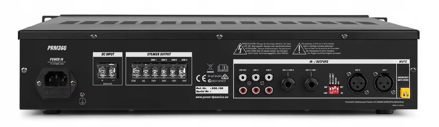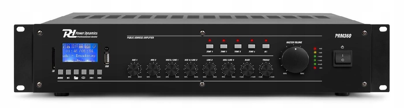 Серия PRM — это серия усилителей, предназначенных для монтажа в стойку, которые можно использовать как усилитель на 100 В или как стандартный усилитель с низким сопротивлением. Эти усилители оснащены приемником Bluetooth, портами USB/SD для воспроизведения файлов MP3 и ярким ЖК-дисплеем. Все усилители PRM также оснащены переключаемым входом XLR с фантомным питанием 24 В для конденсаторных микрофонов. Специально разработан для таких приложений, как пейджинг, объявления, внутренняя связь, фоновая музыка, промышленное вещание и т. д.