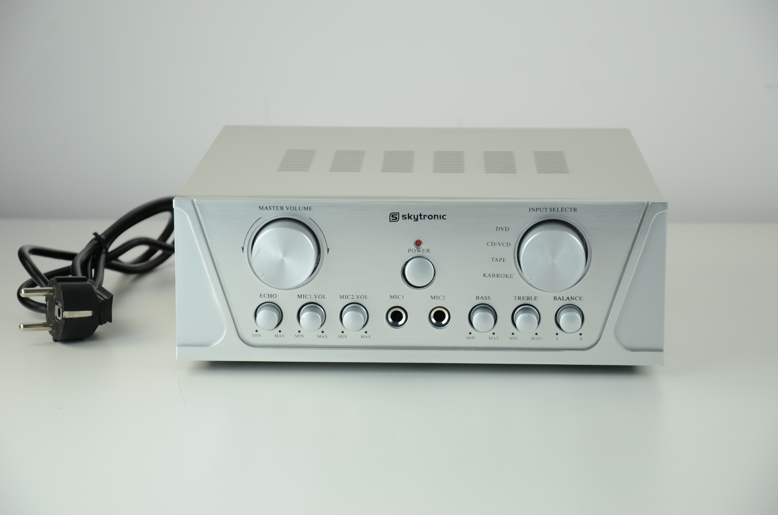 Профессиональный стереоусилитель 2x50 Вт со входами для DVD- и CD-плеера и двумя микрофонными входами.