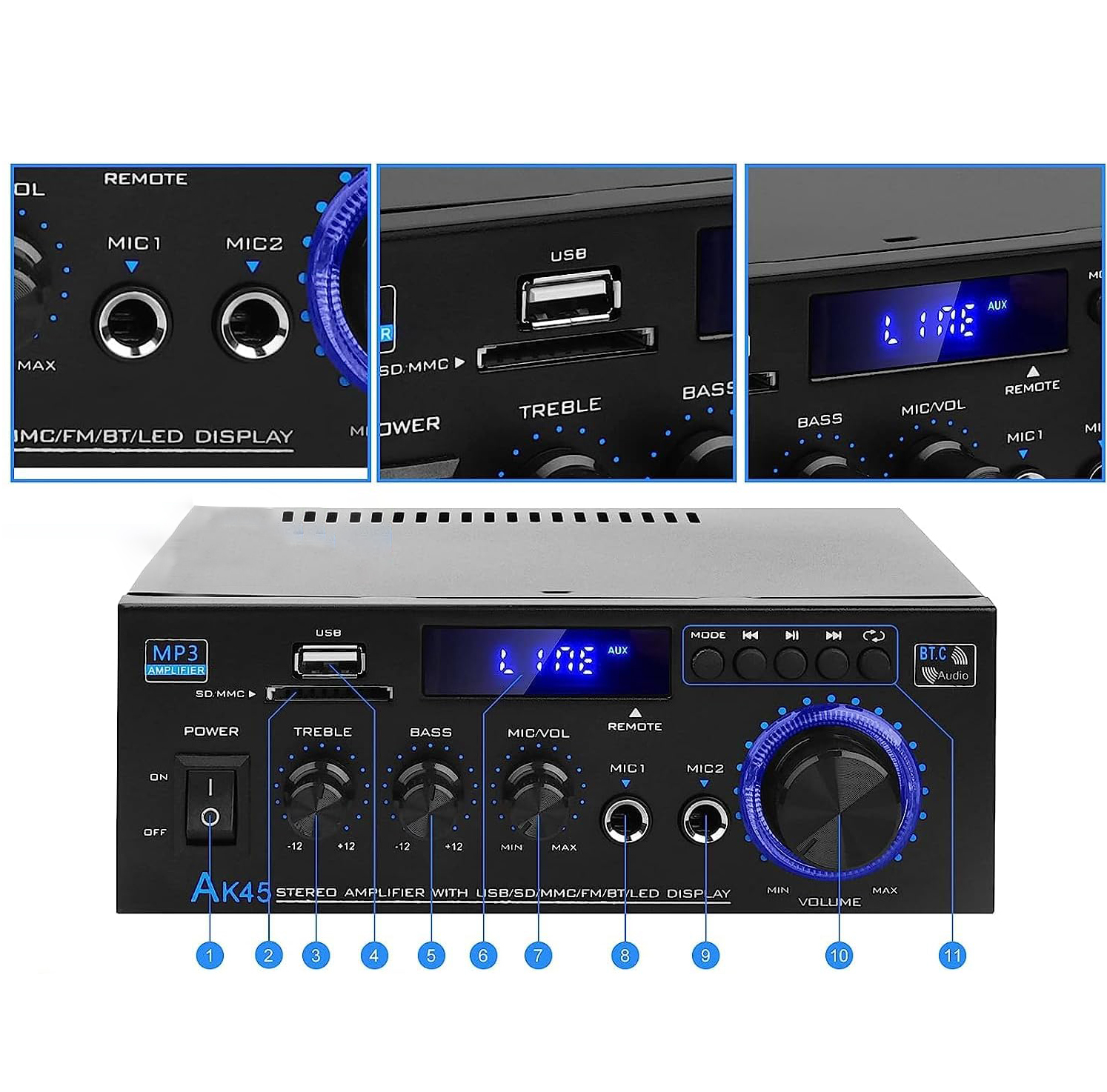 ПІДСИЛЮВАЧ ДЛЯ HIFI КОЛОНКИ BLUETOOTH MINI SPEAKER 220V AK45
