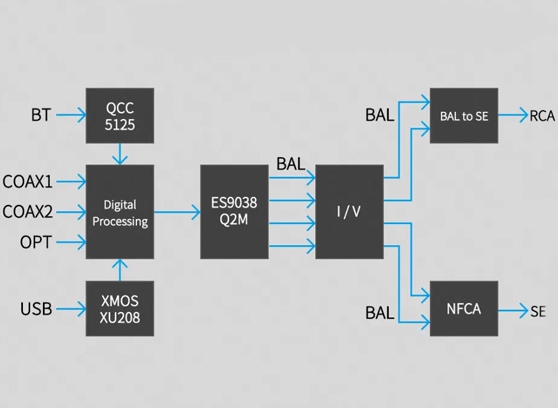 Усовершенствованный настольный усилитель для наушников с USB-ЦАП и модулем Bluetooth. Устройство оснащено USB, оптическим, коаксиальным и Bluetooth-входами, а также RCA и линейными выходами для наушников 3,5 мм.