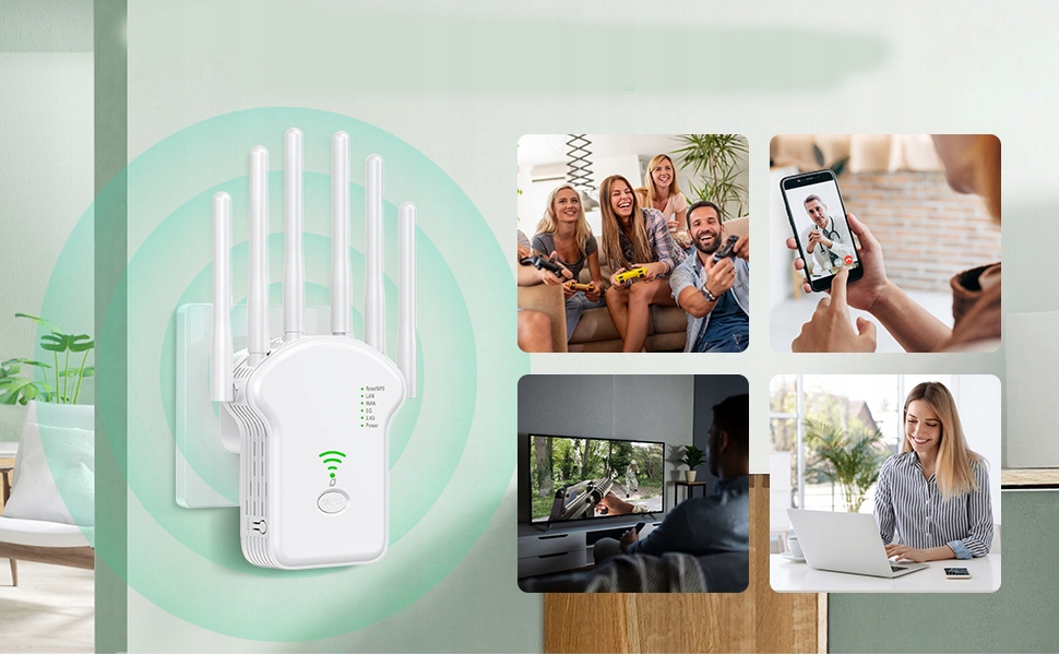 Wi-Fi расширение, оснащенное 6 внешними антеннами с высоким подкреплением, что может устранить мертвые области и улучшить диапазон существующего диапазона Wi-Fi, расширить беспроводной сигнал к ранее недоступным районам или трудным для проводки. Подключитесь даже к слабому сигналу, создайте эффективное двухполосное соединение Wi-Fi и быстрое соединение с онлайн-играми и потоковой передачей HD. Надежный сигнал Wi-Fi, чтобы избежать задержек и буферизации во время онлайн-работы, наслаждаясь потоковой передачей HD, игр, просмотра и соединений. % маршрутизаторов, доступных на рынке и работает с каждым стандартным маршрутизатором или воротами. Поддержка включает в себя каждое устройство