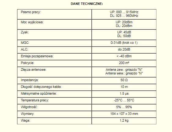Устройство предназначено для телефонов GSM+EGSM, работает в диапазоне 880-960МГц – обычно используется в сетях Orange, Plus и Era, Play, Heya, TakTaketc. усиление сигнала, соответствующее
