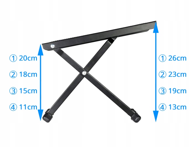 Подставка для ног размером 25 х 10,5 см со ступенчатой регулировкой высоты в диапазоне 11-26 см.