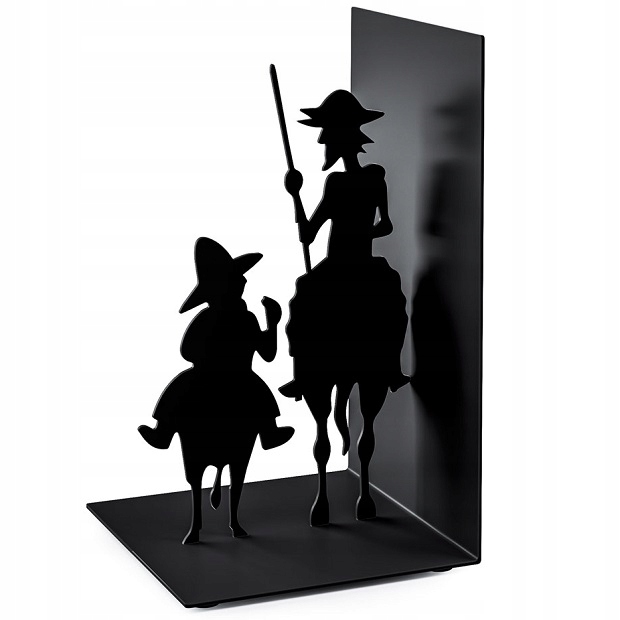 Дон Кихот, под влиянием литературы о рыцарских поступках, решил стать странствующим рыцарем. Интересно, кем он захочет стать, если вы сунете ему под нос собственные книги? Мы не уверены, что действительно хотим это выяснить. В любом случае, Дон Кихот и его верный слуга Санчо Панса не дадут вашим книгам бесконтрольно сдвинуться с места и удержат их в правильном положении благодаря своей силе. Подставка для книг "Дон Кихот" из металла - это не только полезный подарок для всех книжных червей, но и интересное украшение полки, наполненной книгами.
