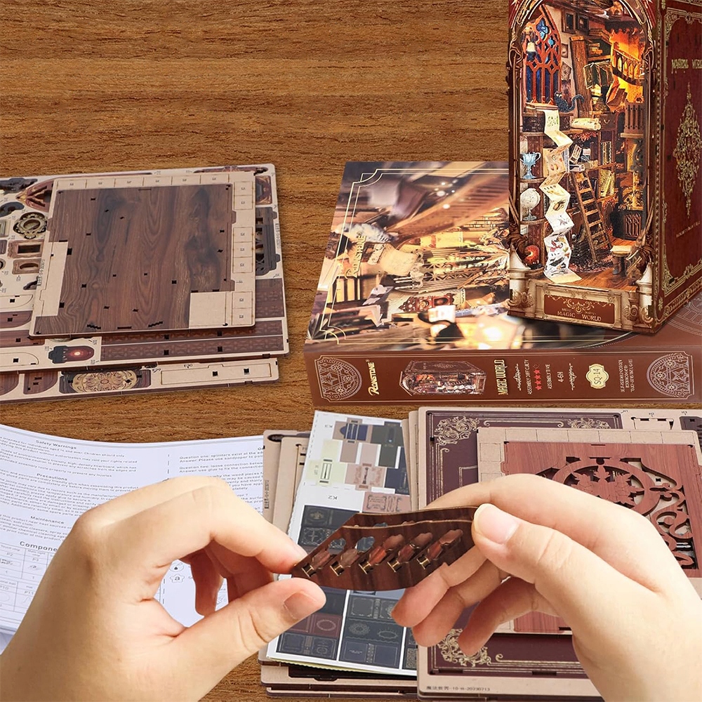 3D-ПАЗЗЛ ПОДСТАВКА ДЛЯ КНИГИ СВЕТОДИОДНАЯ МИНИАТЮРА DIY Волшебный мир Книжный уголок