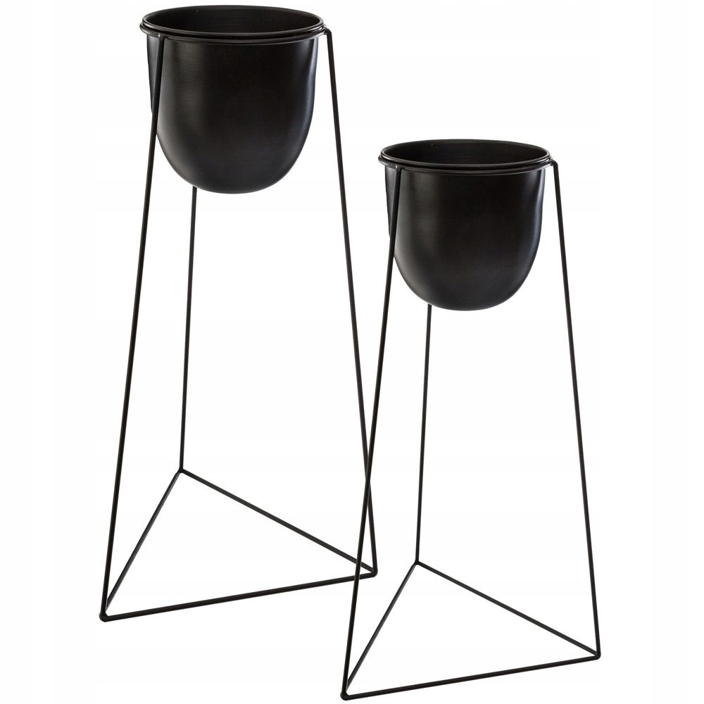 Металлическая подставка для цветов с горшками, вдохновленная последними тенденциями дизайна интерьера. Интересно оформленная основа и цветочный горшок уникальной формы создают единое целое, которое преобразит любую гостиную, спальню, коридор, офис или ресторан. В комплект входят черные подставки и кашпо двух размеров.