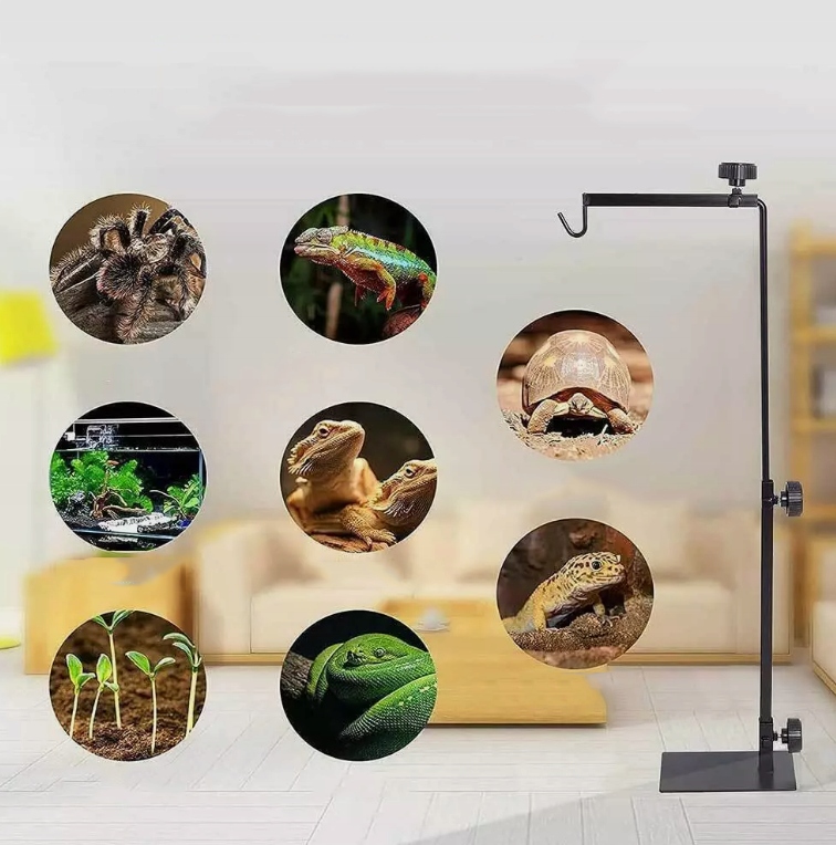 ✔ Регулируемая высота и ширина --- Высота зажима составляет 40-62 см, ширина штангенциркуля составляет 20,5-28 см. Стойка для рептилий позволяет подвешению лампы над террариумом и может быть установлена на соответствующей высоте, чтобы удовлетворить различные потребности.