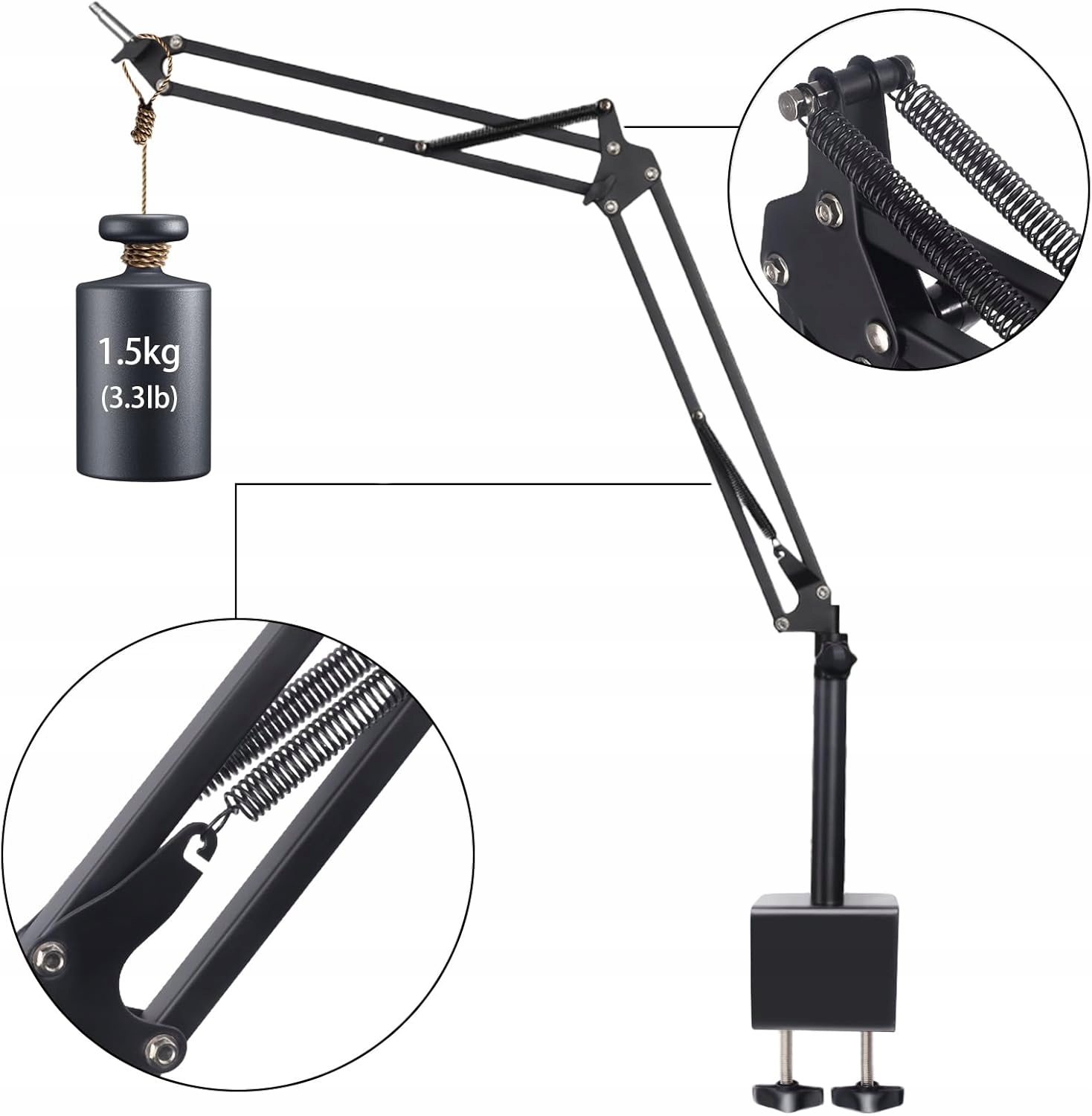Профессиональная микрофонная стойка: микрофонная стойка с подвесным и ножничным рычагом регулируется на 360° во всех направлениях. Вы можете отрегулировать микрофон под соответствующим углом или высотой, чтобы ваш голос был услышан. Перед установкой микрофона на кронштейн микрофона вы можете открутить кнопку и отрегулировать ее на нужный угол. А прочный кронштейн микрофона с очень прочными пружинами обеспечивает дополнительную поддержку и эффективно снижает шум и вибрацию.