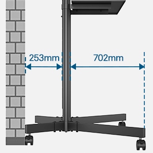 Низкопрофильная конструкция задних ножек (всего 210 мм от стены) позволяет размещать тележку вплотную к стене, экономя пространство и обеспечивая дополнительную устойчивость. .