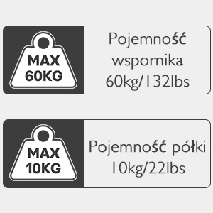 Кронштейн вмещает телевизоры весом до 60 кг, а металлическая полка (регулируемая по высоте) вмещает до 10 кг основных аудио/видео компонентов, DVD-плееров или игровых систем.