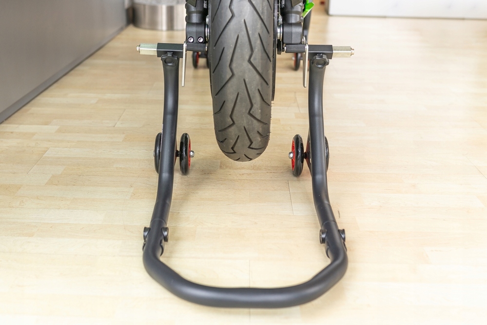 - Регулируемая ширина, которая позволяет адаптировать стойку к мотоциклу с 190 до 275 мм