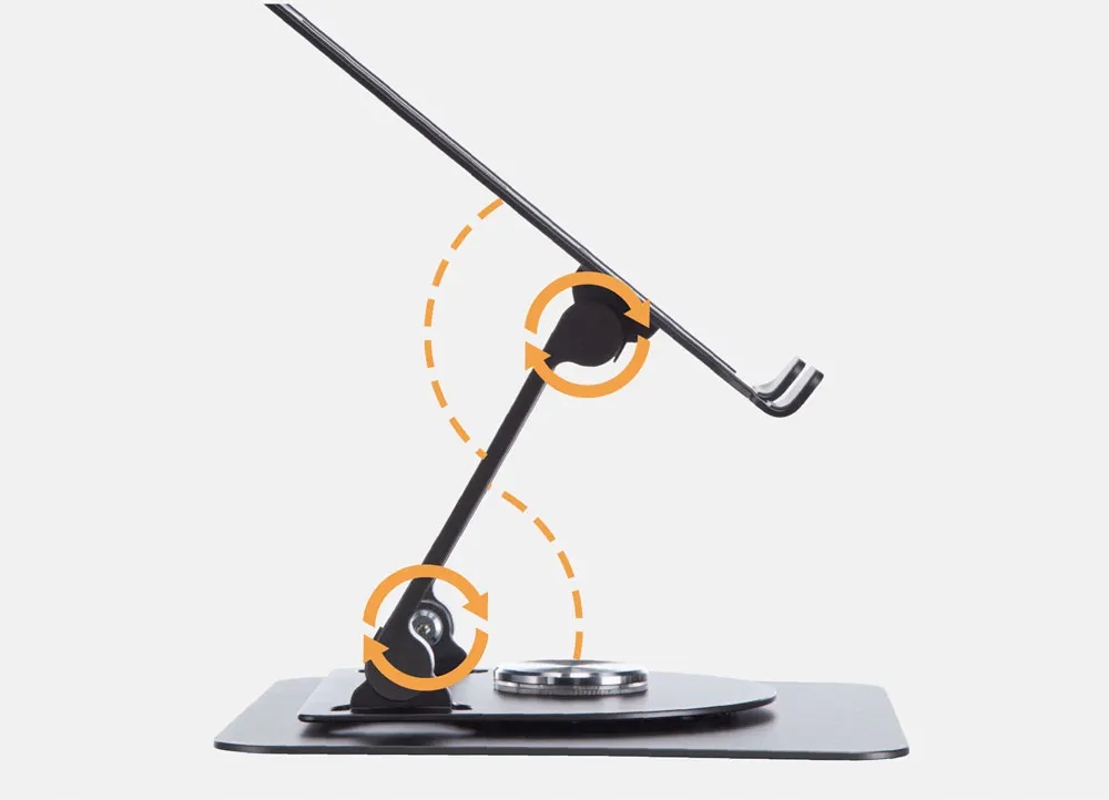 Благодаря функции вращения 360 °, эта подставка для ноутбука предлагает необычайную универсальность. Вы можете легко повернуть экран в любом направлении, который является идеальным решением во время встреч, презентаций или групповой работы. Поворот позволяет быстро делиться контентом без необходимости перемещать все устройство. Это также отличная помощь для людей, которые часто переключаются между различными задачами или нуждаются в удобном угле просмотра из разных мест за столом. Функция вращения делает ваш ноутбук более функциональным и соответствует динамическому стилю работы