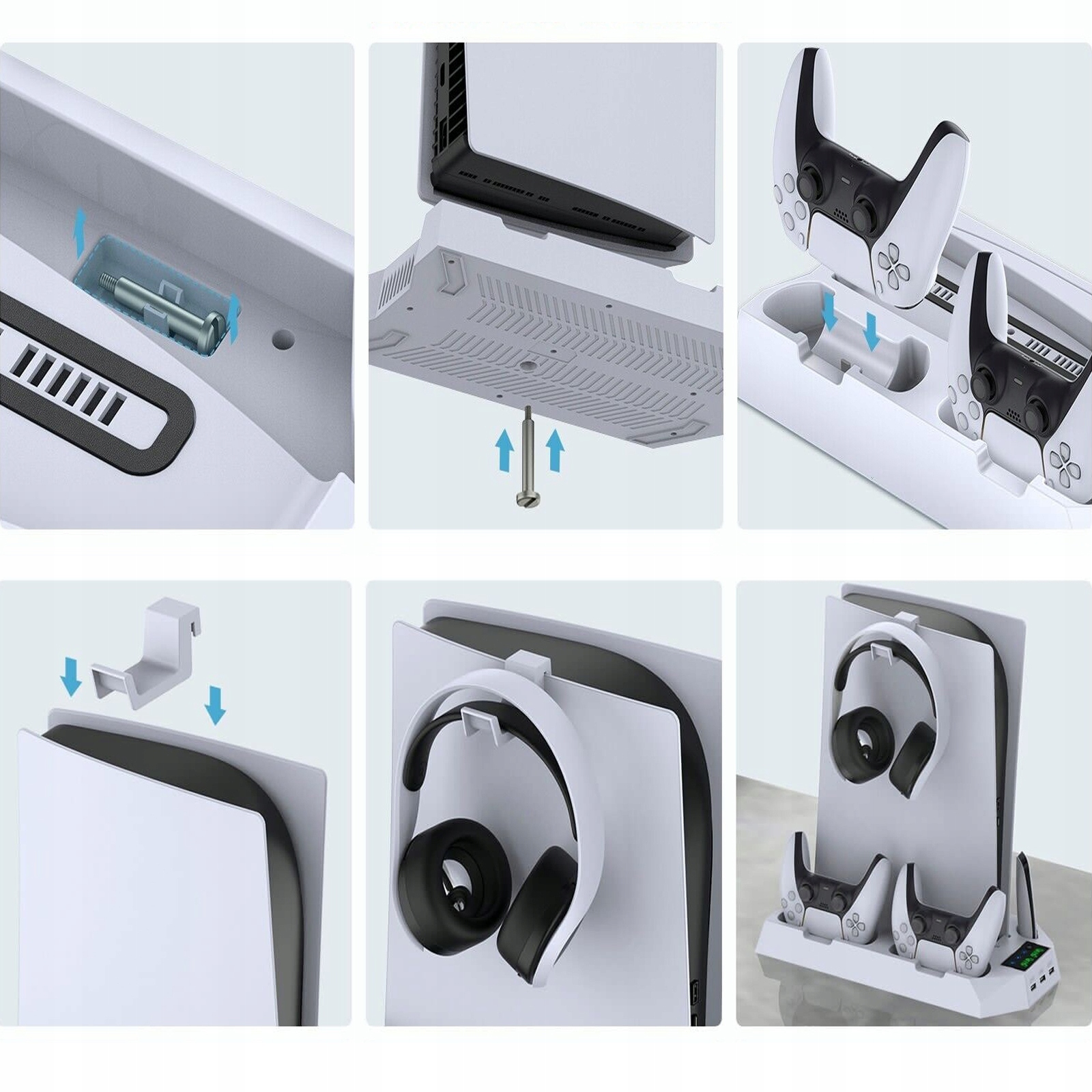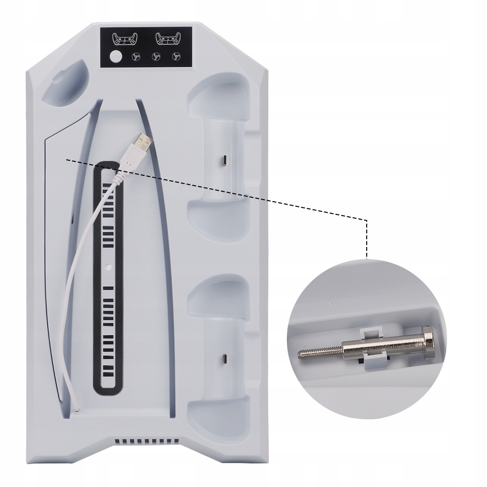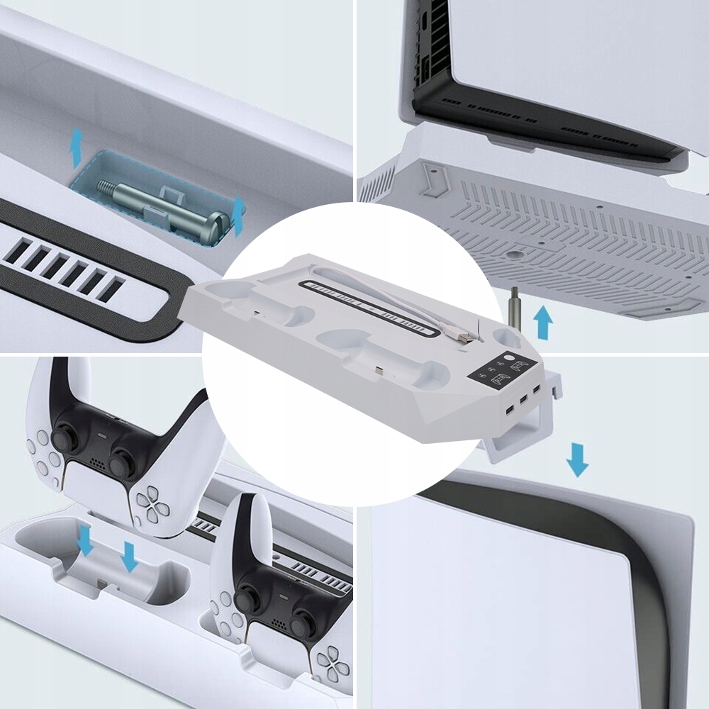 💎💎💎Идеально подходит для организации: Станция охлаждения PS5 включает в себя крючок для наушников, разъем для мультимедийного пульта дистанционного управления и металлический винт. Используйте металлические винты, чтобы надежно закрепить консоль PS5 на охлаждающей подставке консоли PS5 Slim/PS5 Pro/PS5, сохраняя ее устойчивость и безопасность. Эта зарядная станция для PS5 с охлаждающим вентилятором позволяет хранить аксессуары для контроллера PS5, наушники PS5 и медиа-пульт в одном месте.