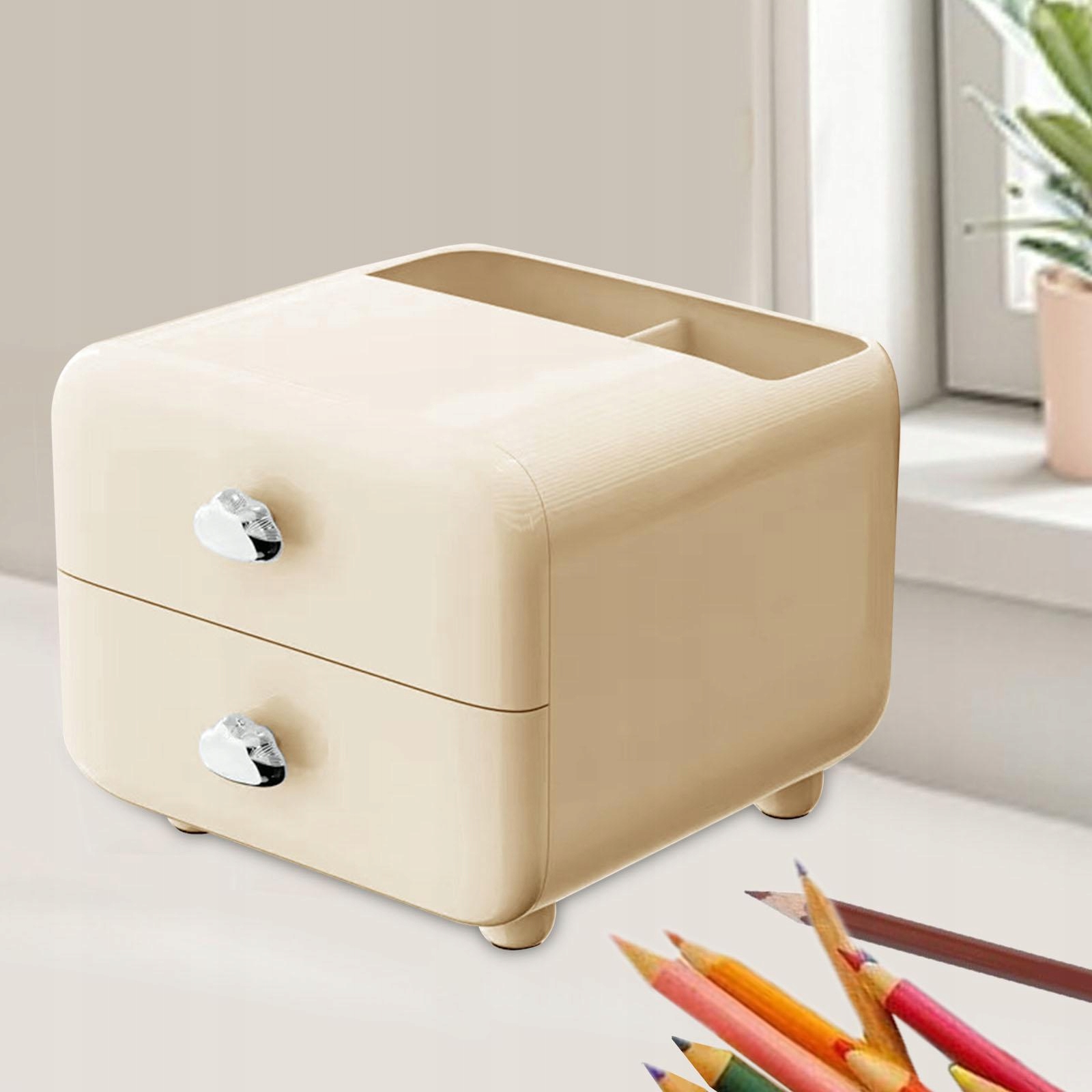 Подставка для карандашей и ручек с выдвижным ящиком. Большой контейнер для косметики. Желтый