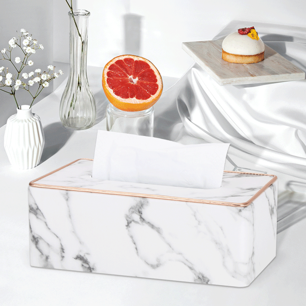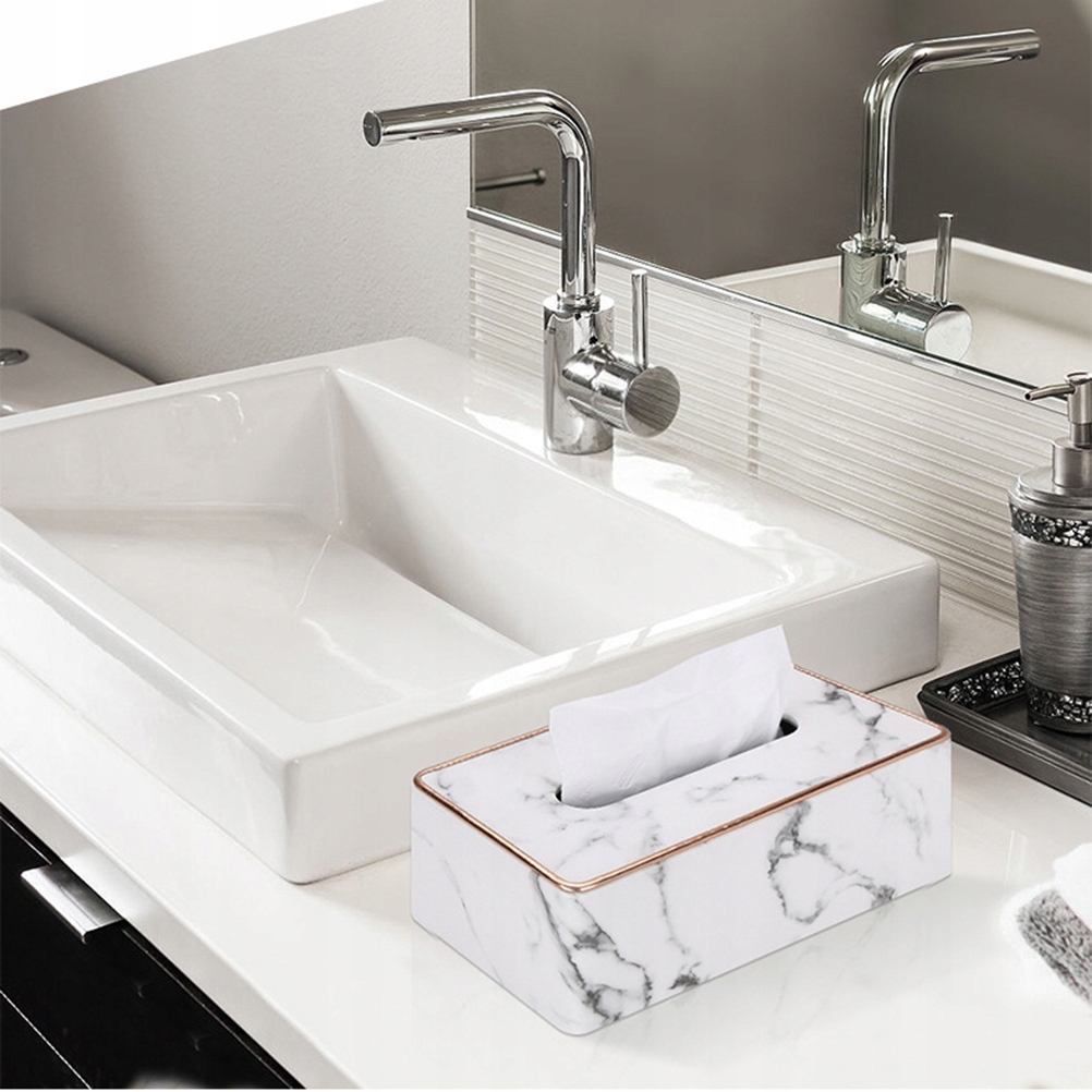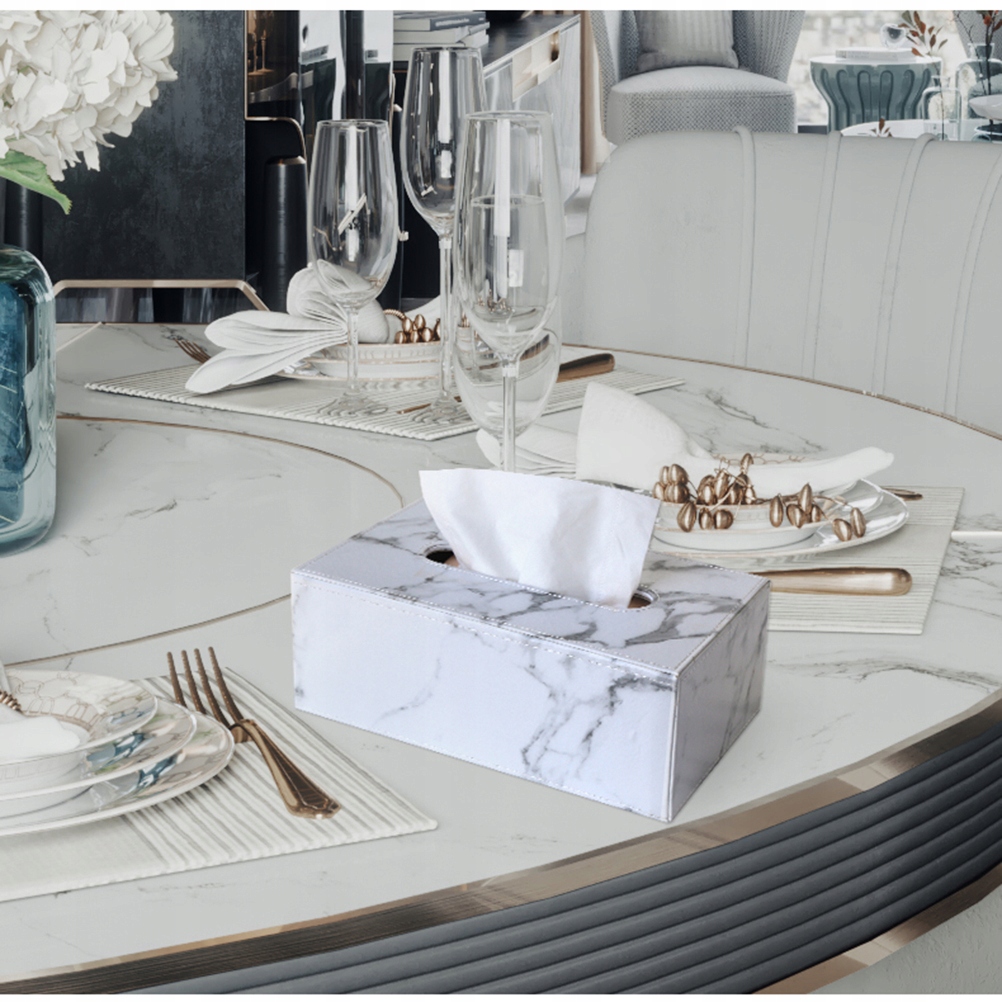 Коробка для салфеток из искусственной кожи с мраморным узором и салфеткой для лица