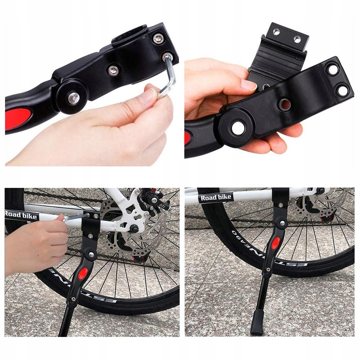 Алюминиевая подставка для велосипеда, прикрепленная к задней трубе рамы, подойдет к любому типу велосипедов, даже к велосипедам с дисковой тормозной системой. Подставка имеет нескользящую пластиковую ножку и 2 резиновые накладки, которые не позволяют велосипеду царапаться при установке на раму.