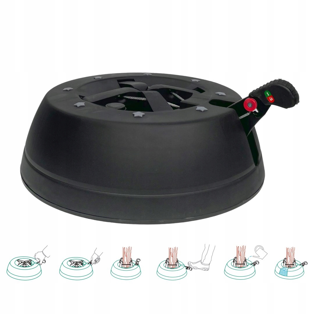 Kamai® Start 2 Рождественская деревянная стенд, созданная для рождественских елок, на высоте до 2,5 метров, предлагает стабильность благодаря нагрузке 4,2 кг, контейнеру для 2,5 литров воды и запатентованной системе из 4 крючков, которые автоматически сжимают ствол. Он оснащен индикатором уровня воды, блокировкой рычага против случайного отверстия и механизмом твердого зажима.