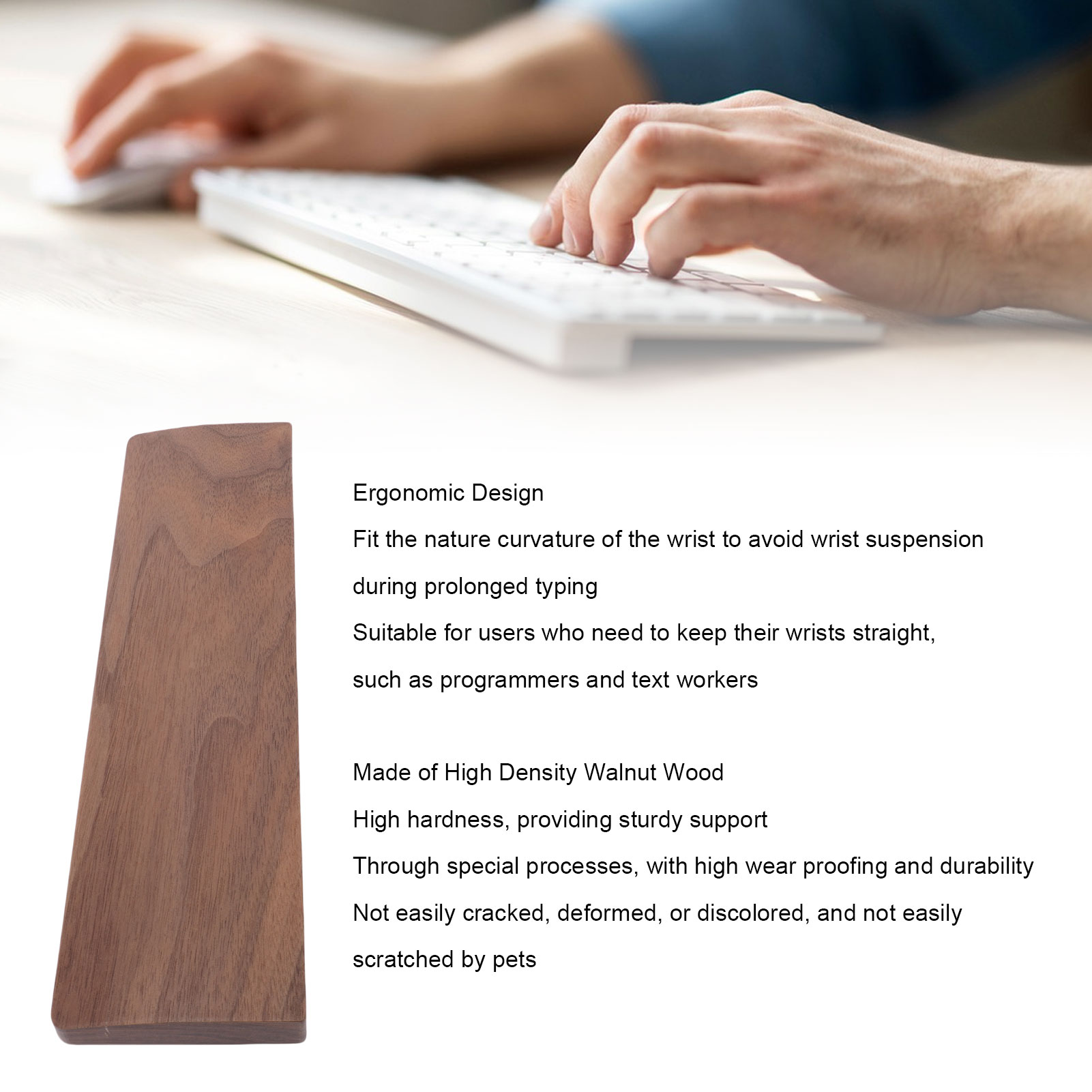 2. Изготовлен из массива дерева: подставка для запястий клавиатуры изготовлена из орехового дерева высокой плотности, которое имеет высокую твердость и трудно деформируется, обеспечивая надежную поддержку.