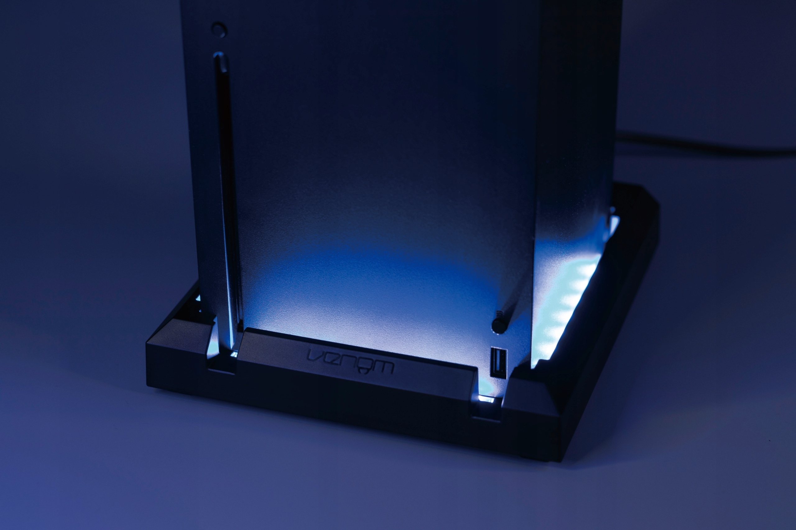 Основа подключается через USB к задней части консоли, а конструкция основания сохраняет доступ ко всем портам и вентиляционным отверстиям и обеспечивает дополнительный уровень прочности, позволяющий удерживать консоль на месте.
