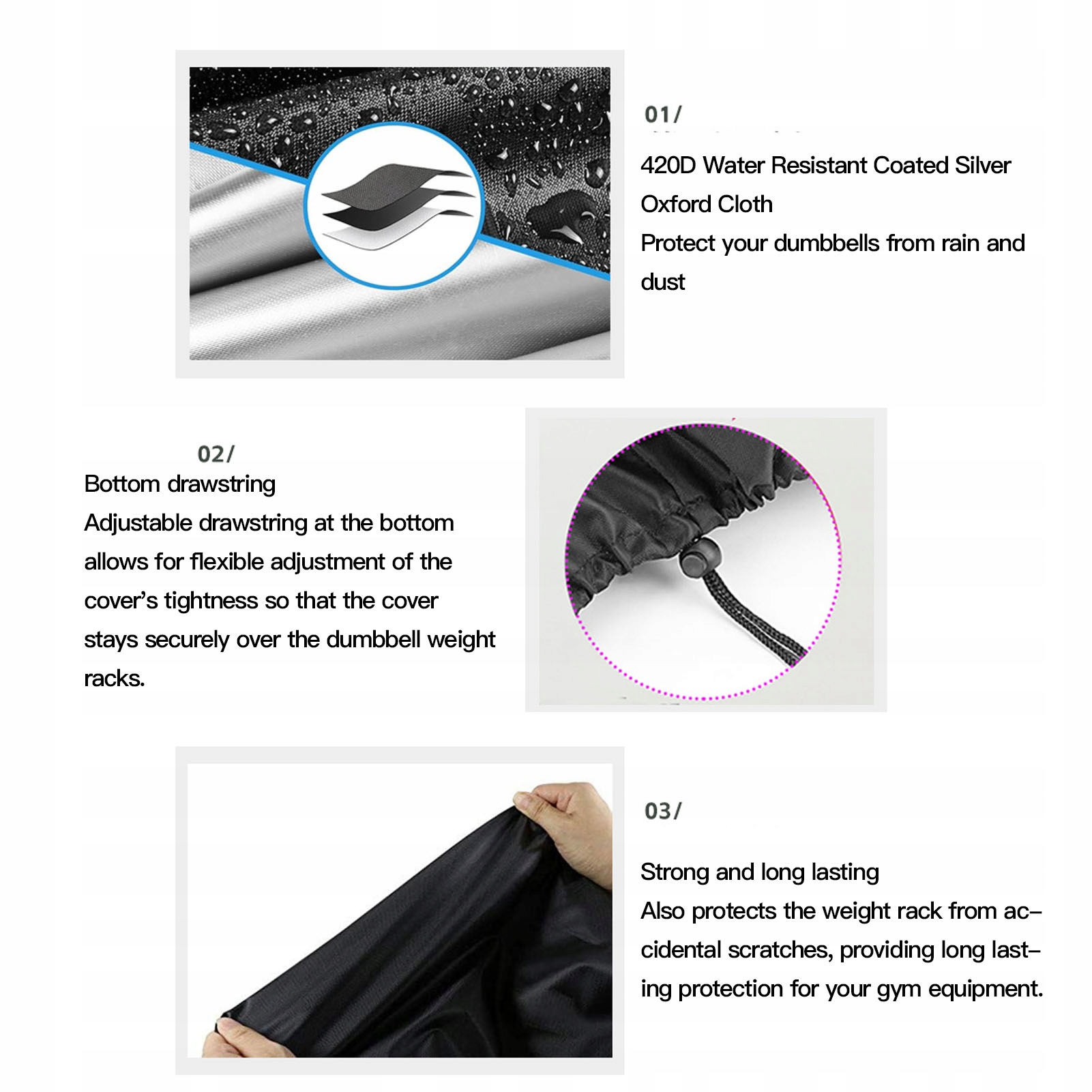 2. Устойчивая к воде и пыли: с двойным резистентным поливным покрытием внутри, подходит как для комнат, так и для использования на открытом воздухе. Защитите свои гантели и веса в течение года до солнечного света, дождя, ветра, пыли и многого другого.