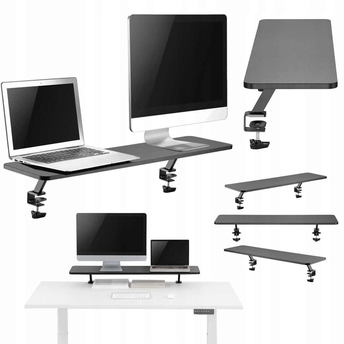 Обеспечьте себе дополнительное рабочее пространство и больше места для хранения одновременно. Уменьшите беспорядок на работе и в игровых зонах. Уменьшите нагрузку на глаза, работая разумнее и сохраняя шейный отдел позвоночника. Работа на двух мониторах стала стандартом (максимум 32″). Благодаря большой ширине мы можем свободно организовать пространство под полкой и на ней. Монитор и ноутбук одновременно? Без проблем. Простой, тонкий, окрашенный в черный цвет, он идеально впишется в любое рабочее место в стиле минимализма. Элегантный, классный. Прочные зажимы позволяют прикрепить его практически к любому столу. Экологически чистая ДСП, устойчива к влаге и механически прочна.